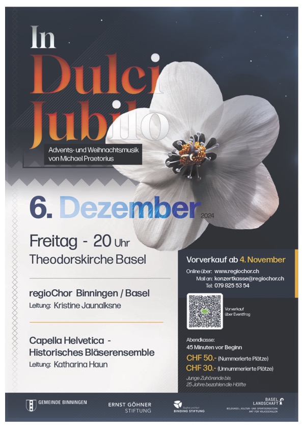 Advents- und Weihnachtsmusik von Michael Praetorius. Mit dem regioChor Binningen/Basel, Leitung Kristine Jaunalksne und der Capella Helvetica, Leitung Katharina Haun.