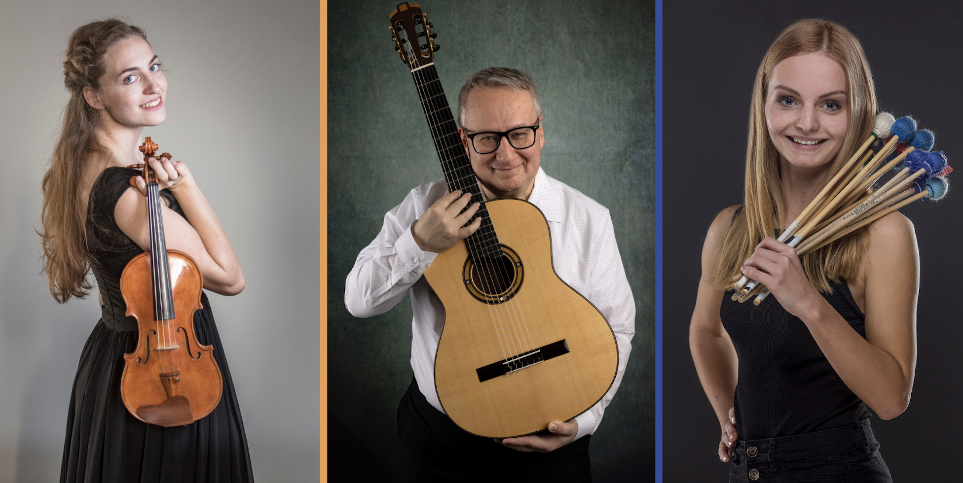In diesem Konzert führt Stefan Hug drei Instrumente zusammen, die Sie so vermutlich noch nie gemeinsam gehört haben. Die Musikerinnen Susanne Isenberg (Violine) und Nežka Prosenjak (Marimba) werden gemeinsam mit Stefan Hug (Gitarre) ein vielseitiges und abwechslungsreiches Programm zusammenstellen. Alle sind zu diesem besonderen musikalischen Genuss herzlich eingeladen.