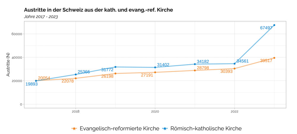 Die Evangelisch-reformierte Kirche Schweiz erklärt in einer Medienmitteilung, dass diese Entwicklung Teil einer langfristigen Erosion der Kirchenmitgliedschaft sei. Strukturelle Faktoren und individuelle Entscheidungen trügen dazu bei. Viele Mitglieder seien nur noch lose mit der Kirche verbunden, was die Abwanderung begünstige. Die EKS sieht auch einen Zusammenhang mit der Veröffentlichung der Pilotstudie zu sexuellem Missbrauch in der römisch-katholischen Kirche. Die mediale Präsenz habe einige Mitglieder an ihre Kirchenmitgliedschaft erinnert und zum Austritt bewegt.