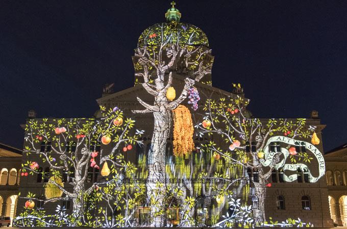 Bereits zum siebten Mal wird das Schweizer Regierungszentrum unter dem Namen «Rendezvous Bundesplatz» allabendlich angestrahlt. Dieses Mal zeigt die aufwendig produzierte Projektion in Licht und Ton die facettenreiche Geschichte der Reformation, vom Mittelalter bis in die Neuzeit. Die Erfindung des Buchdrucks, die Spaltung der katholischen Kirche, das Betreten eines neuen Kontinents kommen vor. Aber auch Unrühmlicheres wie Religionskriege oder der Bildersturm wird nicht ausgeblendet.