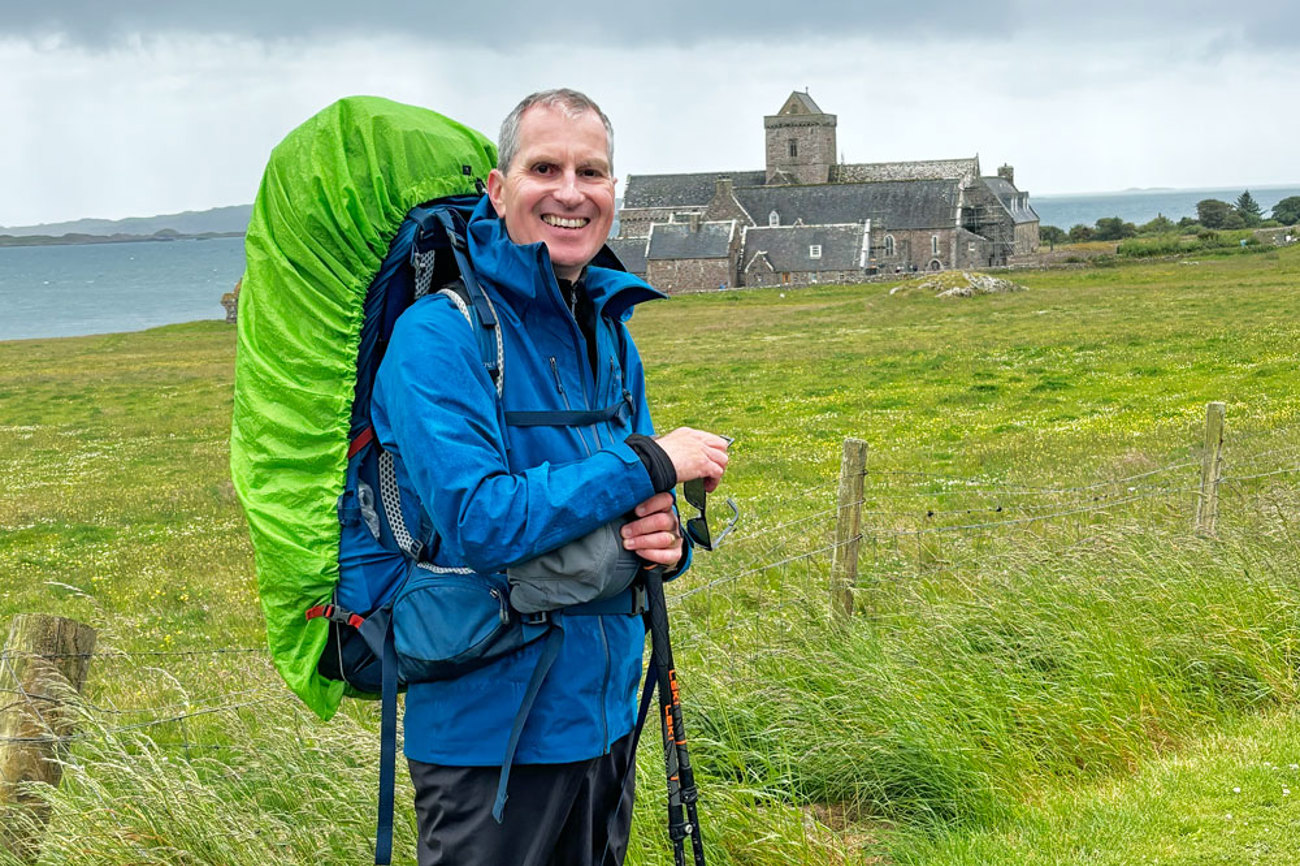 Die Wanderung machte Michael Sohn im Rahmen einer Studienreise. Los ging’s am 1. Mai 2024 von Riehen und durch den Schwarzwald weiter bis Amsterdam. Von da flog er nach Glasgow und wanderte dann weiter. Das Ziel: die Insel Iona in den Hebriden. Insgesamt 1300 Kilometer legte er zurück, jeden Tag zwischen 16 und 27. Das drei Monate lang.