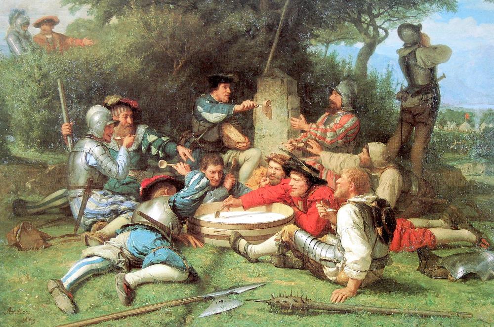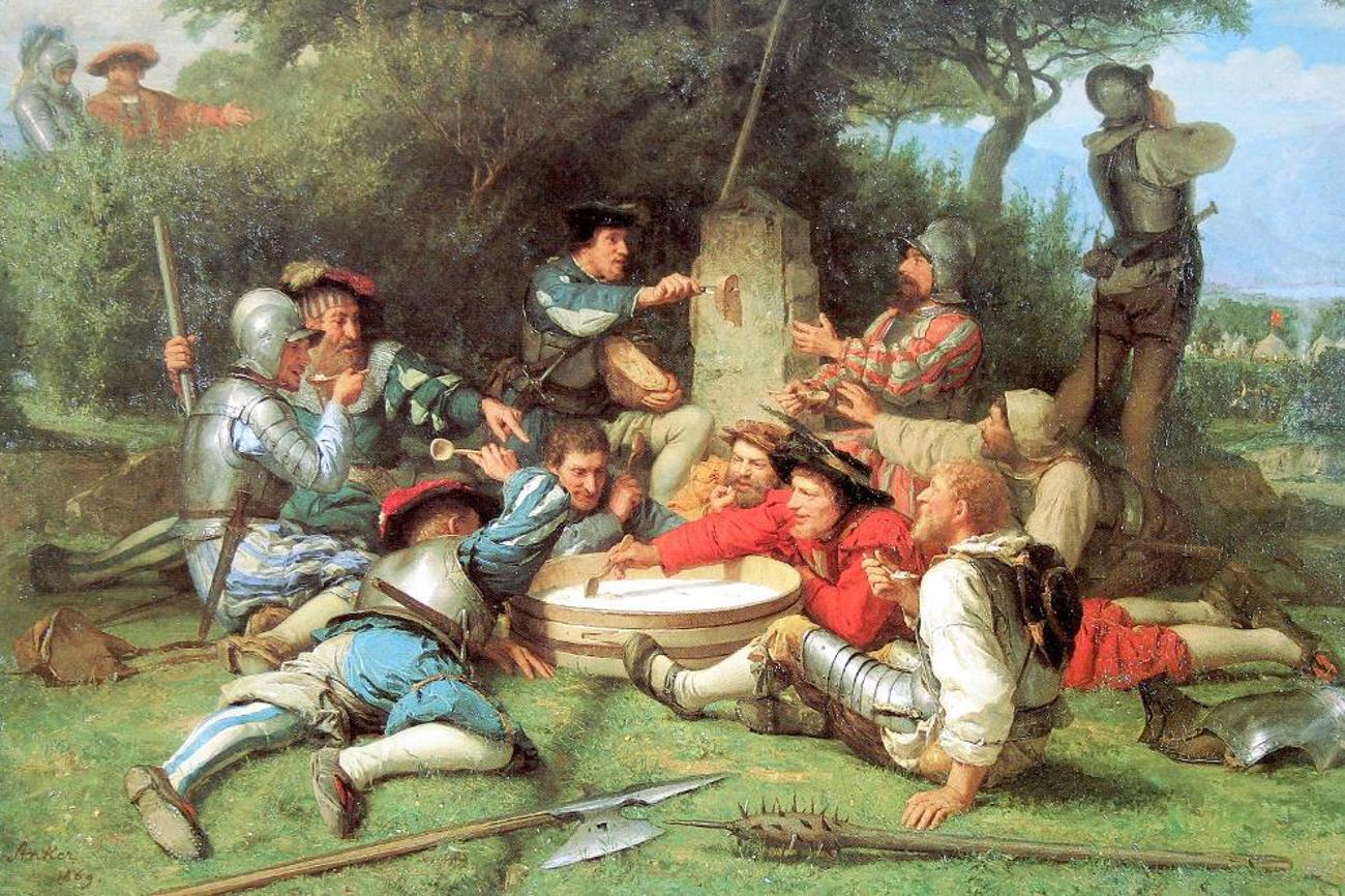 Die Kappeler Milchsuppe. ist der Klassiker in der Schweizer Geschichte der Friedensförderung. 1529 stehen 30'000 reformierte Soldaten 9000 katholischen Kämpfern gegenüber. Kurz bevor das grausame Hauen und Stechen losgeht, gelingt es dem Mediator, dem Glarner Landamman Hans Aebli, die Schlacht abzuwenden. Bei einer heissen Milchsuppe kühlen sich die Gemüter der Krieger ab.