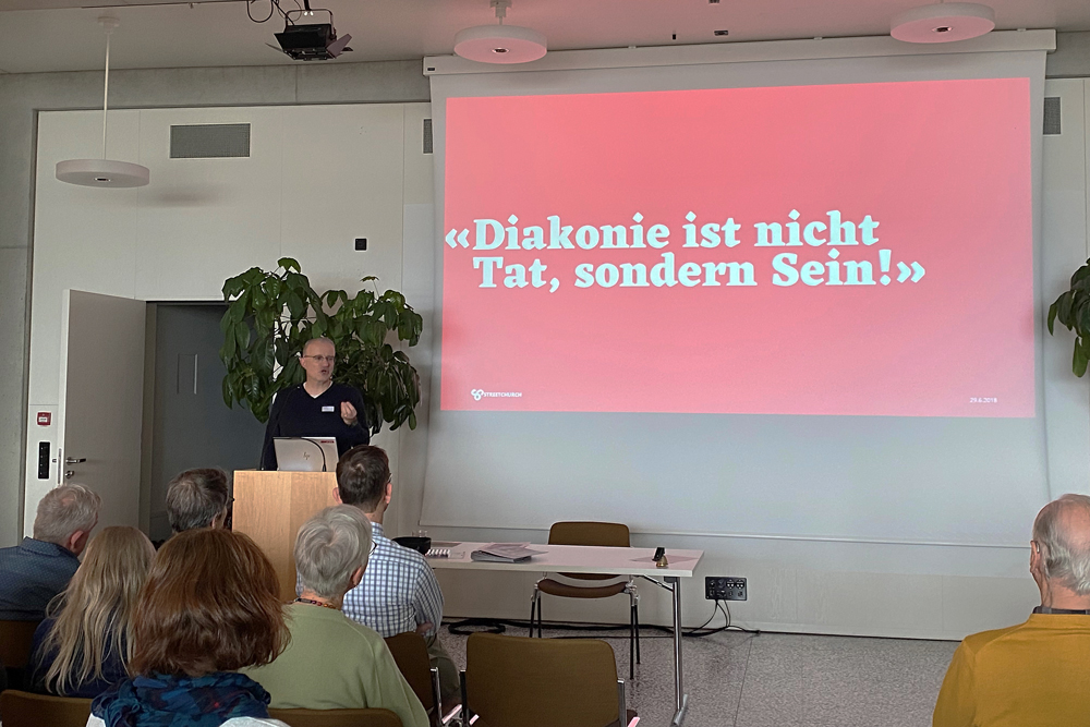 Hauptreferent Markus Giger, theologischer Leiter der reformierten Streetchurch in Zürich, hob die inklusive Rolle der Kirche hervor. Er erklärte, wie die Kirche Menschen am Rande der Gesellschaft einlädt und Gemeinschaft fördert. Giger zeigte anhand von Beispielen, wie dies bei Jugendlichen mit schwierigen Biografien gelingt.