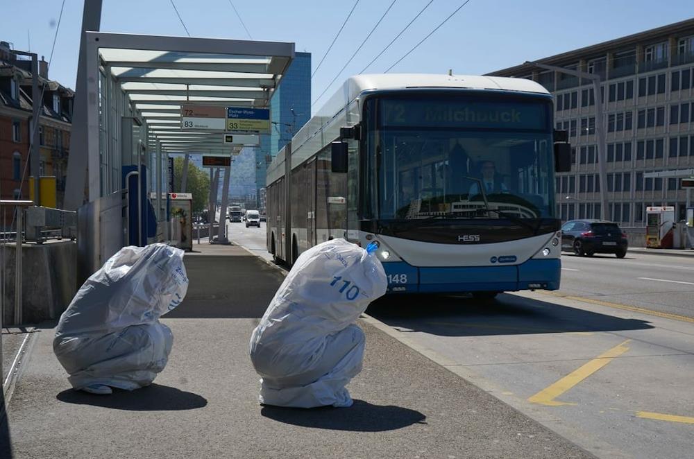 Ein Grünabfuhrkübel auf Beinen stakst eine Treppe hinunter. Bald erhebt sich ein menschenhoher Turm aus zusammengeklebten Kartonschachteln am Trottoirrand und schwankt über den Escher-Wyss-Platz im Zürcher Stadtkreis 5. Ein weisser 110-Liter-Gebührenkehrichtsack trippelt schnell los, zur Tarnung duckt er sich immer wieder und verharrt bewegungslos – wie ein richtiger «Ghüdersack».