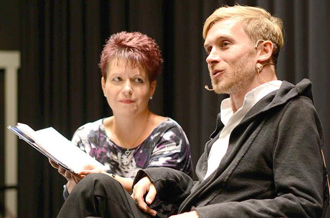 Autor und Schauspieler auf der Bühne