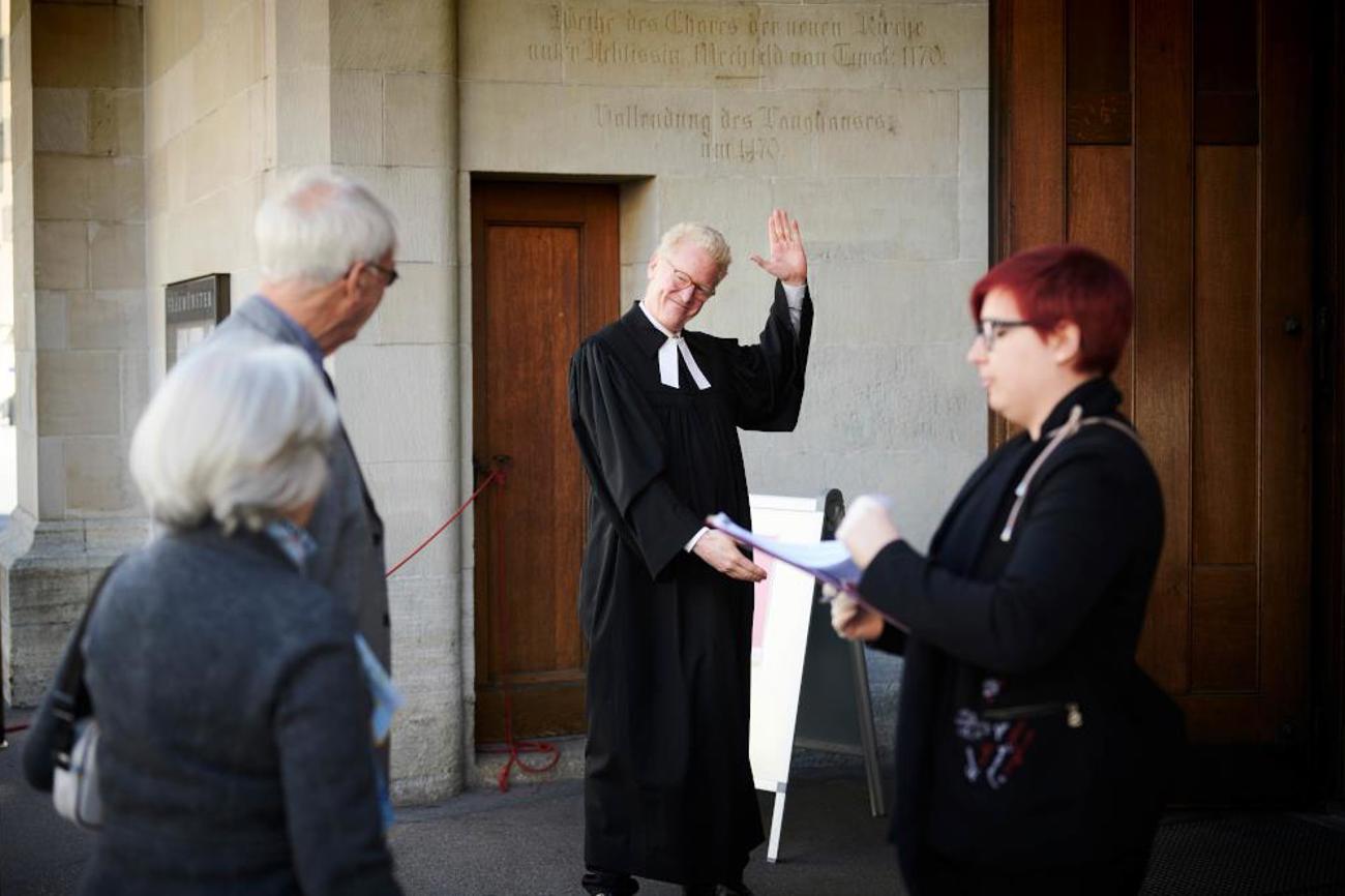 Ungewohnt war nicht nur die strikte Sitzordnung im Fraumünster. Auch auf den Gemeindegesang wurde verzichtet, um das Ansteckungsrisiko zu minimieren. Kompensiert wurde das Defizit durch die wunderbare Musik von Organist Jörg Ulrich Busch und Anuschka Thul an der Trompete.