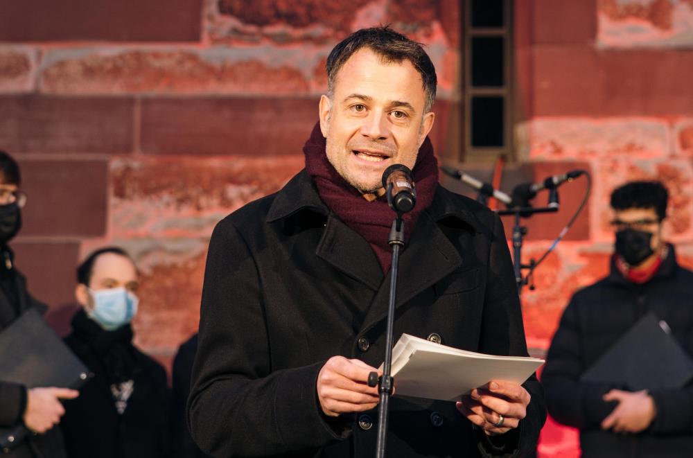 In seiner kurzen Ansprache erinnerte Kaspar Sutter daran, dass seit dem Zweiten Weltkrieg noch nie so viele Menschen auf der Flucht waren. Laut UNHCR waren es in diesem Jahr weltweit über 80 Millionen Menschen. Die Schweiz nimmt einige Tausend Flüchtende auf – dem Kanton Basel-Stadt werden einige Dutzend davon zugeteilt. «Basel könnte mehr flüchtende Menschen aufnehmen», erklärte Sutter. Mit der Aufnahme allein sei es aber nicht getan: «Wie geht es den Menschen bei uns? Fühlen sie sich sicher und können sie in Frieden leben?», fragte Sutter.