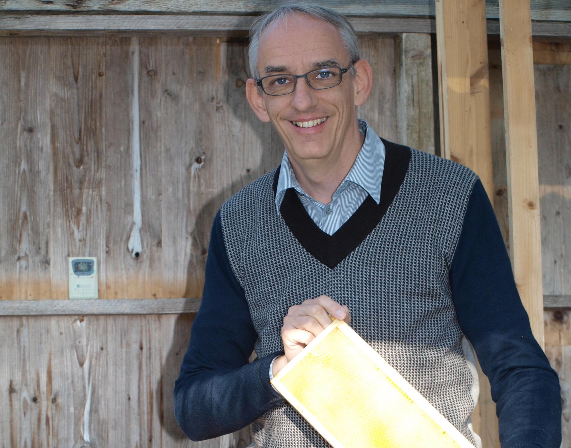 Zuhören mit Ohr und Herz ist seine Stärke, nicht nur als Seelsorger, auch sonst im Gespräch. Doch fällt das Thema auf seine Bienenzucht, sind Begeisterung und Redeschwall kaum zu bremsen. Was mit dem anvertrauten Bienenschwarm seiner Schwester für den Schulbub Lukas begann, bringt Kirchenrat Weinhold heute noch ins Schwärmen: «Die Bienen liessen mich nicht mehr los. Ihr geordnetes System ist vielfältig verflochten und dennoch tolerant bei Fehlern. Sie lassen mich immer wieder neu über die Komplexität der Schöpfung staunen.» Die Bienenstöcke stehen im Pfarrgarten. Ob das kein Problem sei? «Nein», versichert Lukas Weinhold: «Ich bin stolz auf meine fleissigen und sanften Bienen.»