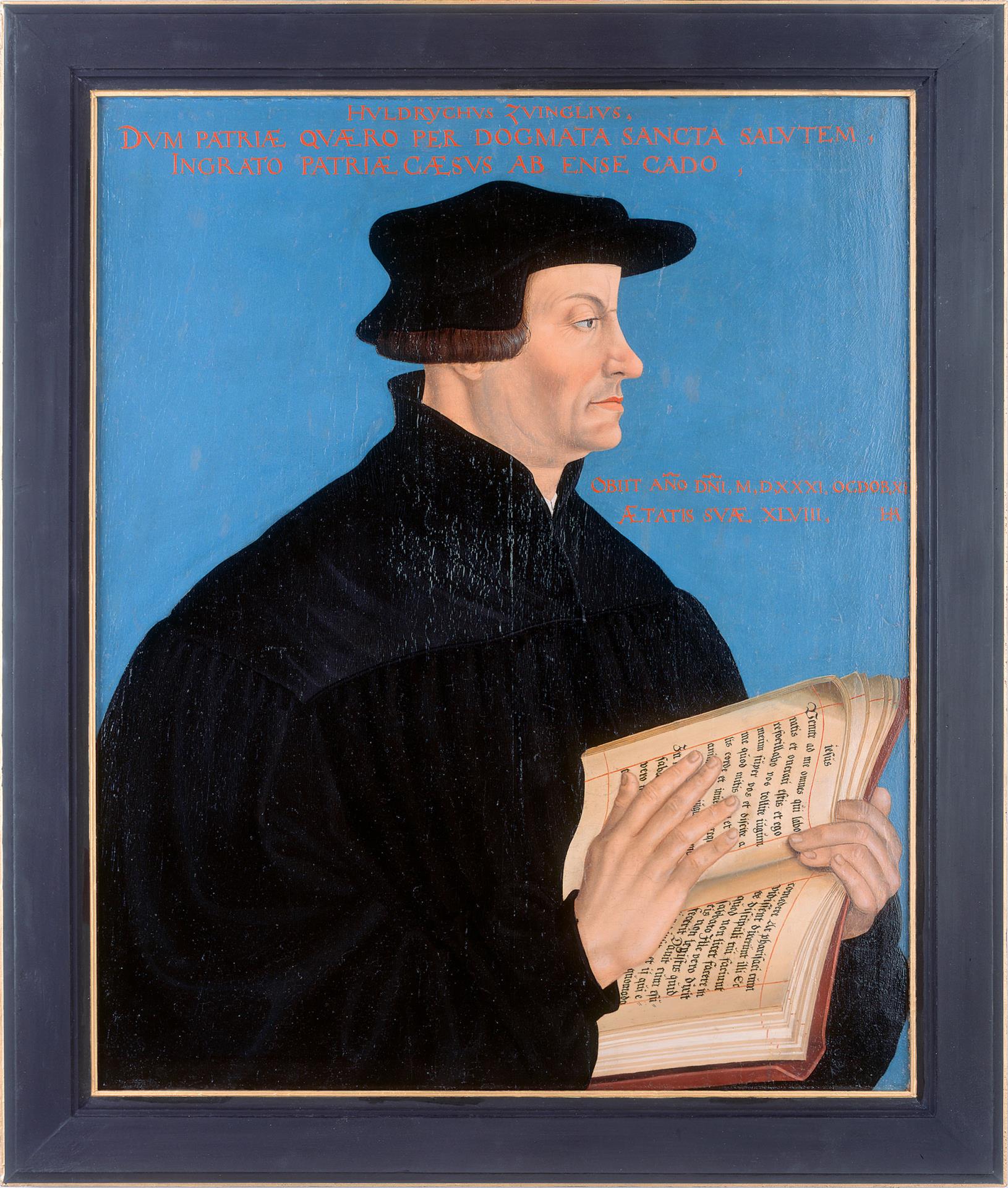 Warum aber finden sich keine von Zwingli gemalten Porträts zu seinen Lebzeiten? Sicher spielt hier das konsequente Bilderverbot des Theologen hinein. Und auch seine Bescheidenheit. So schrieb er einmal: „Vor dem Herrn bezeuge ich: wenn dann meine Schriften von allen gelesen wären, so wünschte ich, mein Name geriete allenthalben wieder in Vergessenheit." Was für ein Unterschied zu Martin Luther, der auch bildmässig Public Relations um seine Person im grossen Stil betrieb. Dutzendmal wurde er porträtiert vom Meister Lukas Cranach und seinen Schülern. Das Atelier des grossen Malers war so etwas wie die visuelle Propagandamaschinerie der Reformation.