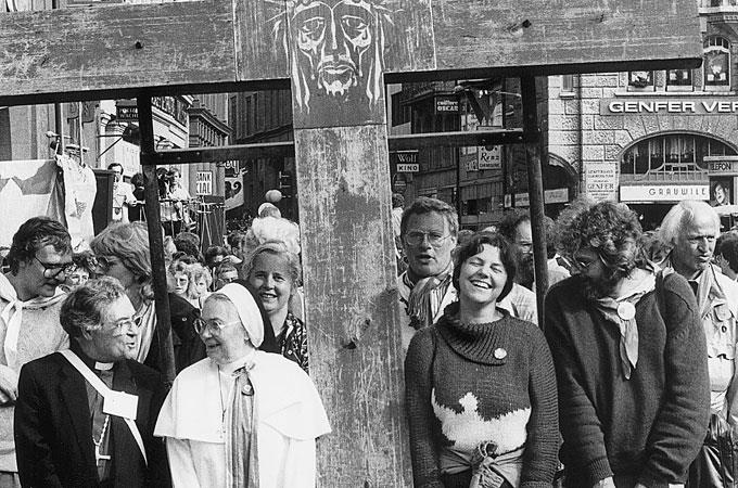 Erinnern sich Zeitzeugen an den Mai 1989 in Basel, kommen viele Bilder hoch: Der Seiltänzer, der über dem Rhein schwebt. Lutheraner, die mit Anglikanern auf dem Münsterplatz diskutieren. Katholische Bischöfe im Gespräch mit Jugendlichen aus ökumenischen Basisgruppen im Tram. Die vollen Hallen zu Podien wie der «Zukunftswerkstatt». Das Plakat von Hans Erni zum Treffen: Eine Pfingsttaube, rot, auf schwarzem Grund. Heute erinnert vor dem Kreuzgang des Basler Münstersder Gedenkstein «Stone of Witness» an diese Erste Europäische Ökumenische Versammlung.
