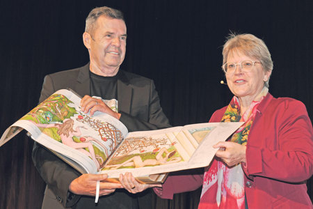 Auf grosses Interesse stiess auch die Ausstellung der Wiedmann-Bibel. Der Stuttgarter Künstler Willy Wiedmann hatte in jahrelanger Arbeit die längste Bibel der Welt gemalt. Ein Exemplar dieser Bibel wurde vom Sohn des Künstlers, Martin Wiedmann, feierlich an Rita Famos übergeben.
