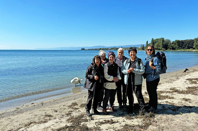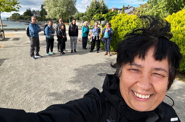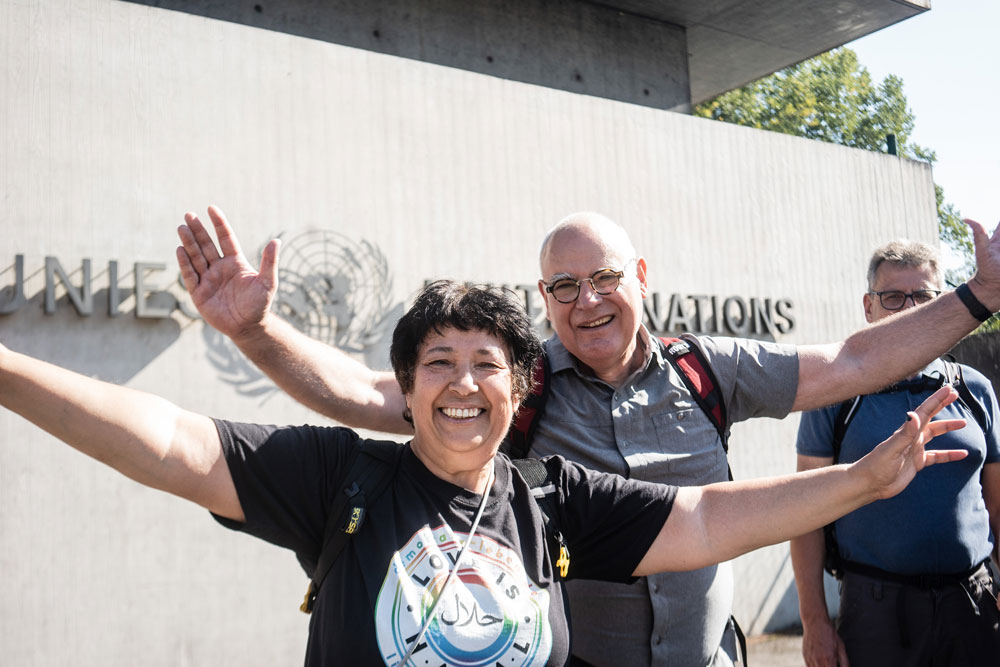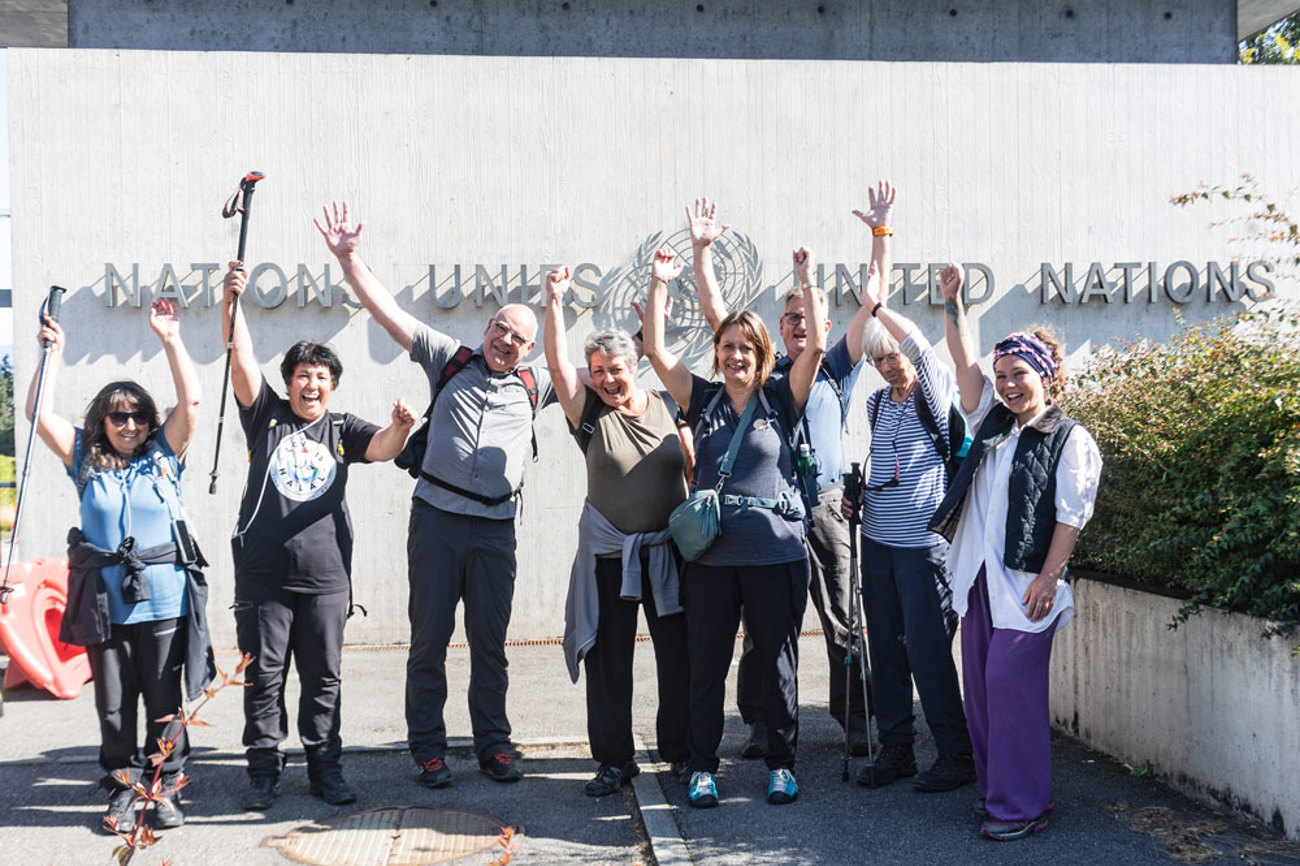 Sie pilgerten bei Nebel, Hitze und Regen. An diesem Tag wanderte die Gruppe von Bossey nach Genf. Es war die letzte Etappe eines bemerkenswerten Projekts im Zeichen der Religionsfreiheit und des Friedens. Vor dem UNO-Gebäude liegen sich alle in den Armen. Auch Anita Vögtlin ist dabei. Die Basler Kirchenrätin hat den dreiwöchigen Pilgerweg massgeblich organisiert.