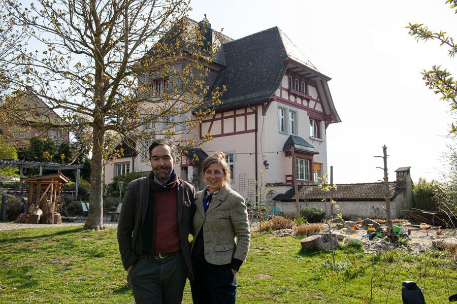 Chiara Iselin und Roger Nigg sind 2017 aus der Stadt Zürich in die Schaffhauser Villa Hornburg gezogen. Sie sind eine der vier Gründerfamilien der mittlerweile vierjährigen Wohnbaugenossenschaft Hornburg: «Wir sind als letzte Familie zum Projekt gestossen, haben jedoch mit den Initianten im Rahmen einer Gartenkooperative in Zürich zusammengearbeitet.» Dies habe den Boden für die heutige Lebensform geschaffen. «Wir konnten mit anderen an einem gemeinsamen Ziel und dennoch autonom arbeiten. Das hat uns zugesagt», erläutert Roger Nigg. «Wenn man den Alltag mit anderen gemeinsam strukturiert, kann man ihn besser bewältigen.» Das gilt besonders für die Corona-Zeit: «Wir erleben hier keine Einsamkeit, sondern sind vom Leben umgeben. Wir schätzen den Austausch, können uns aber in die eigenen vier Wände zurückziehen und die Tür hinter uns schliessen.»
