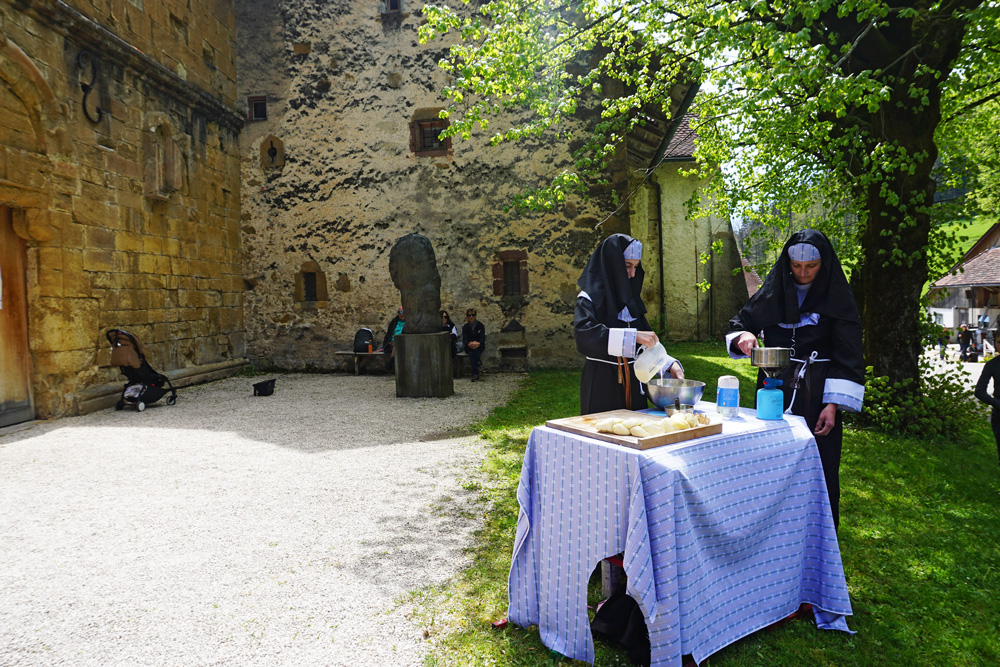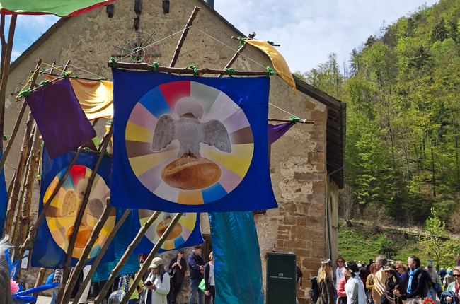 Die Pilgerprozession endete in einem ausgelassenen Fest rund um das Kloster Schönthal. Der Geruch von frisch gebackenem Brot erwartete die hungrigen Pilger und Pilgerinnen bereits. Geist und Gemüt wurden von Sinneseindrücken nur so berauscht – genau wie es sich Steiner und Lenzlinger für die Vernissage vorgestellt hatten: Ein grosses Fest, in das die ganze Dorfgemeinschaft miteingebunden ist. Der eilige Geist muss schliesslich erst in Bewegung geraten, um wieder zur Ruhe zu kommen!