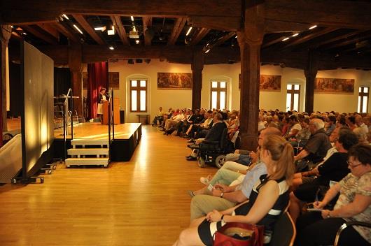 Nach den Grußworten der Vertreter aus Kirche und Politik, die angesichts des wunderbaren Sommerwetters und der aufrüttelnden Nachrichten zum Brexit von launig bis besorgt und mahnend ausfielen, ergriff die 58-Jährige Margot Kässmann das Wort. Zunächst stellte sie kurz die geplanten Veranstaltungen und Aktionen zum Reformationsjahr 2017 vor, zu dem der Startschuss bereits am 31. Oktober 2016 fällt. Dann folgten ein Referat in zehn Punkten, in denen sie ausführlich darlegte, warum wir Grund haben, das Reformationsjubiläum zu feiern.