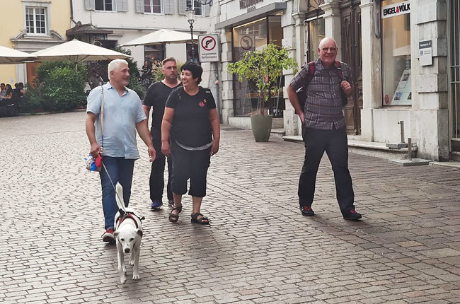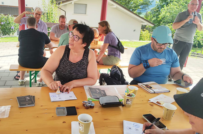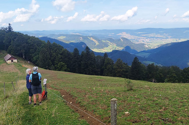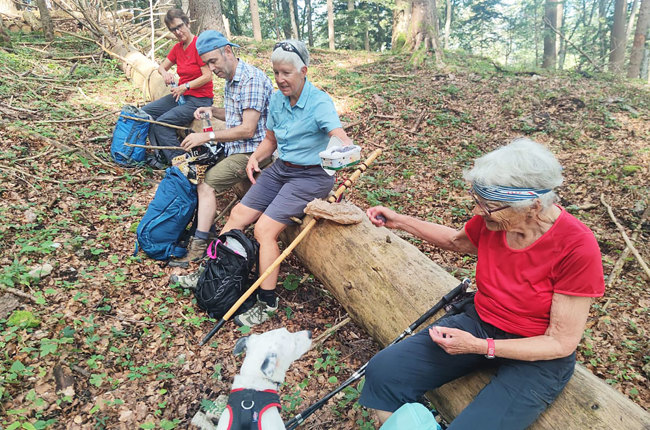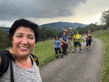 Pfarrer Burkhard Müller-Ludwig, Pfarrerin Melanie Ludwig und Edith Schöni, die Präsidentin der katholischen Kirchgemeinde, erwarten die Pilgerinnen und Pilger mit Erfrischungen und Getränken. Mit grosser Verspätung trifft die Gruppe ein. Die Schweiz sei schon eine anspruchsvolle Etappe auf dem Jakobsweg, sagt Seyran Ateş. Es gehe immer auf und ab. Sie habe gestaunt, wie 88- und 86-jährige Seniorinnen den steilen Aufstieg über die Jurahöhen gemeistert hätten. Das sei eine bewundernswerte sportliche Leistung.