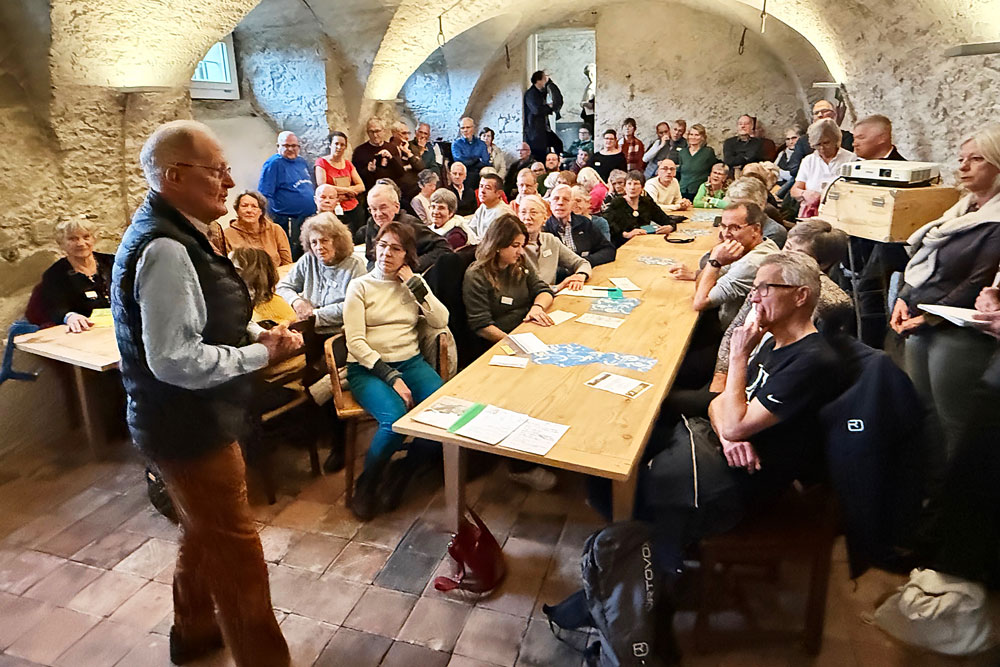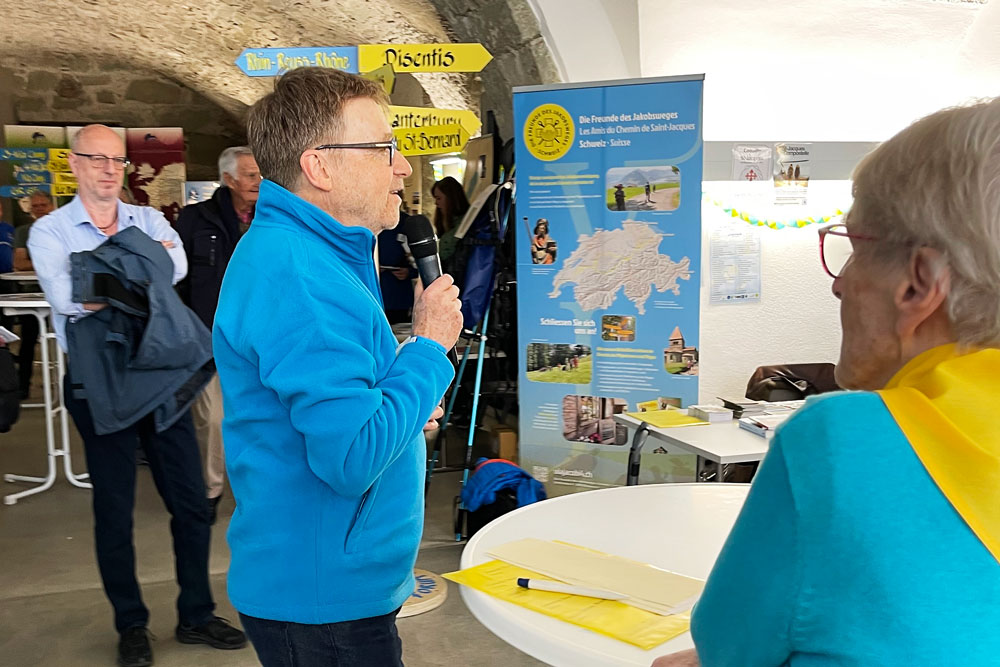 Spannend gestaltete sich auch das Rahmenprogramm im alten Weinkeller des Klosters: Joseph Deiss, Alt-Bundespräsident und heute Fernwanderer auf Pilgerwegen, hielt ein launiges Eröffnungsreferat: Witzig berichtete er von seiner Leidenschaft für das Unterwegssein zu Fuss. «Dies ist ein wunderbarer Tag für alle, die bereit sind, Blasen einzufangen.»