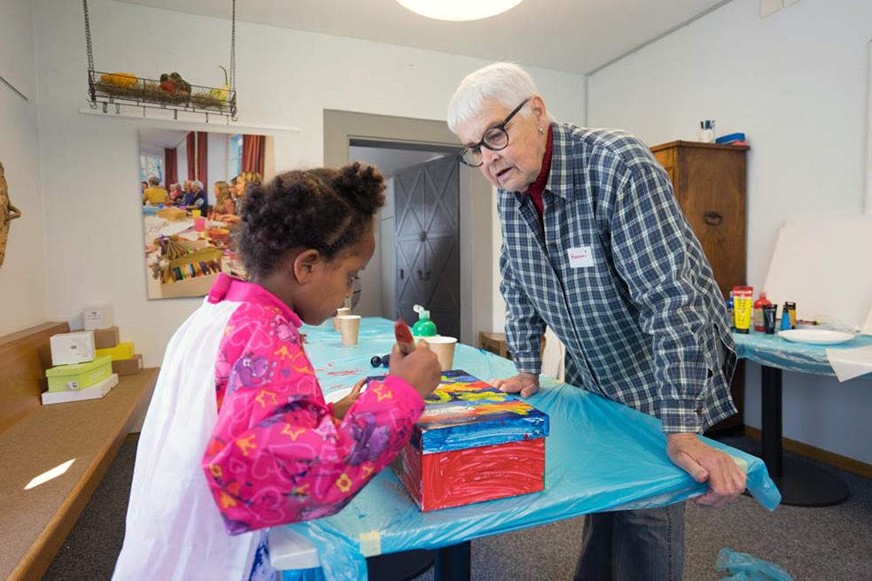 Regelmässig trifft sich die „Freitagsrunde“, eine Frauengruppe, welche sich mit aktuellen Themen beschäftigt. Für ein geselliges Zusammensein wird jede zweite Woche ein Mittagstisch – nebst dem Generationenessen der Kirchgemeinde, bei dem Jung und Alt miteinander speisen – für Senioren und Seniorinnen angeboten. Die Singrunde „Alti Lieder vörehole“ lockt auch Menschen aus umliegenden Gemeinden ins Kirchgemeindehaus Speicher. Während das „Regenbogengebet“ die christlichen Interessen der älteren Menschen anspricht, sind es beim „Erzählcafé“ ganz andere Personen, welche sich über Erinnerungen austauschen. Ein Höhepunkt im Kirchenjahr sind die ökumenischen Seniorenferien sowie das Adventskranzbinden, bei welchem Jung und Alt Hand in Hand arbeiten. Speziell freuen mich immer wieder die Projekte unter „Generationen begegnen sich“. Der Besuch einer Kunstausstellung und das gemeinsame Malen mit anschliessender Bilderausstellung haben Kinder und ältere Menschen einander näher gebracht. Bei all diesen Angeboten darf ich auf viele engagierte, ehrenamtliche Mitarbeitende zählen. Ohne sie wäre eine vielfältige Seniorenarbeit nie und nimmer möglich. Dieses Netzwerk ist mir eine bereichernde und wertvolle Unterstützung.