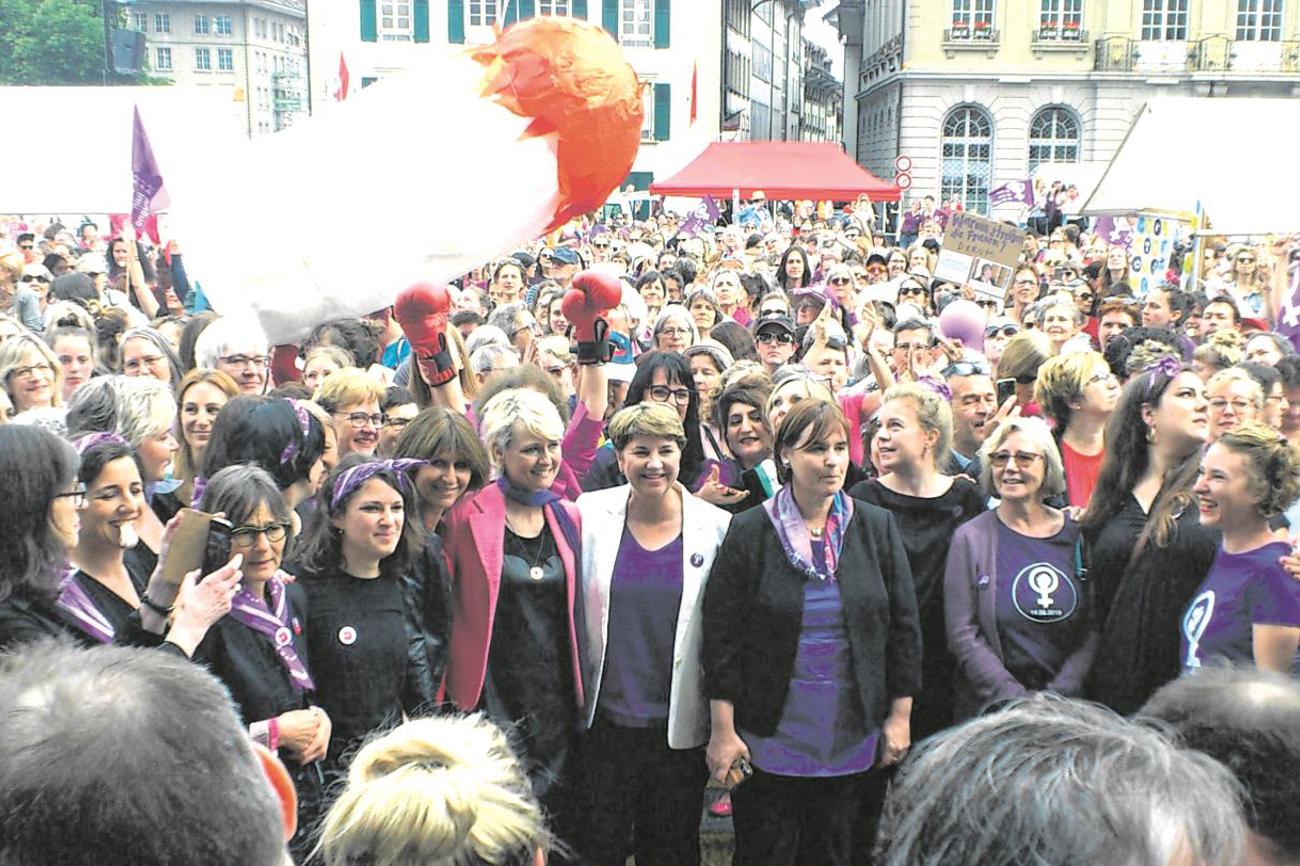 Woher kommen plötzlich diese fordernden, ungeduldigen Gedanken? Hat mich der pinke Punkt verwandelt? Nach Bett und Schokolade verspüre ich jedenfalls keine Sehnsucht mehr. Die Streiklust hat mich gepackt. Ich habe gute Argumente. Spätestens auf dem Bundesplatz kann ich mich den Forderungen der 40 000 Anwesenden nicht mehr entziehen. So viele Frauen, junge und alte, aber auch erstaunlich viele Män-