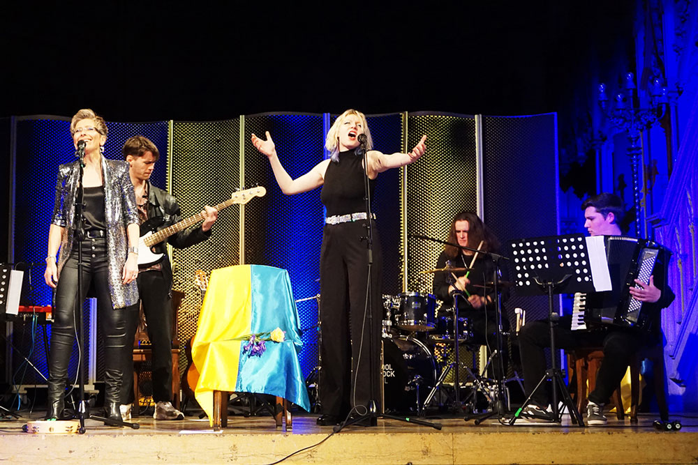 «Können Sie sich vorstellen, zwei Seelen zu haben?», fragt die ukrainische Musikerin Halena Simon an die volle Kirche gewandt. «Oder eine, die halbiert ist? Beide Hälften können lachen, singen – und brennen.» Sie spricht von der Gleichzeitigkeit der Gefühle. Von der Hoffnung und der Verzweiflung. Von der Frage, die sie jeden Tag ihren Verwandten und Freunde in der Ukraine stellt: «Bist du okay? In Wirklichkeit heisst diese Frage: ‹Lebst du noch?›»