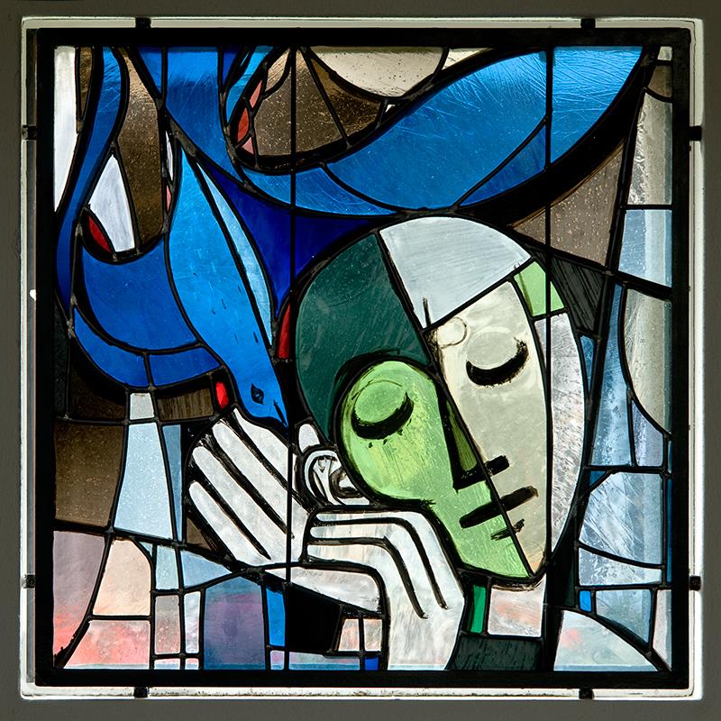 Über meinem Bett hängt seit vielen Jahren eine Reproduktion des Glasbildes Felix Hoffmanns aus der ref. Kirche Bellach mit dem Titel Hören. Diese ganz nach innen gewandte Aufmerksamkeit, das tiefe Lauschen, die Heilige Geistkraft als weisse Taube beim Ohr, erinnern mich immer wieder daran, dass ich als Hörende unterwegs bin, hörend auf die Stimme Gottes. Alle Gebete sind eine Form von Kommunikation. Psalmen bitten Gott um Gehör oder wissen darum, dass Gott hört, oder sie beklagen sein Schweigen. Gott spricht sein Volk an als eines mit tauben Ohren, das nicht zu hören vermag. Da sind all die Prophetinnen und Propheten, radikal Hörende, die auch Unbequemes verkündeten. Und Jesus erweist sich als Hörender, indem er sich immer wieder zurückzieht in die Einsamkeit und daraus sein Wirken, sein Reden und Sein schöpft.