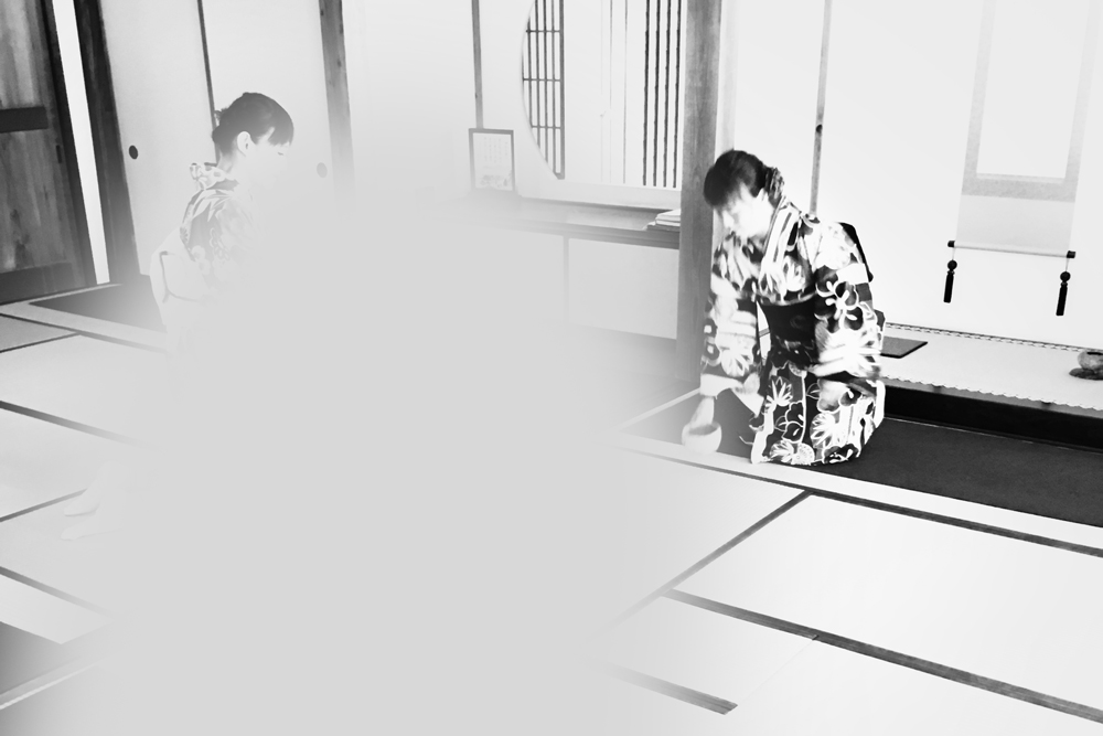 Jedes Detail in diesem kleinen Raum ist schlicht und sorgfältig gestaltet: die Wände, der Boden, die wenigen Möbel und Dekorationen – alles zeugt von präziser Handwerkskunst und Ästhetik. Holz und Lehmputz strahlen Wärme und Geborgenheit aus. Durch die milchige Scheibe eines Fensters fällt sanftes Tageslicht auf die Strohmatten, Tatami, am Boden. Auf diese hat sich der Gast gesetzt und wartet. An der Scheibe ist eine Papierrolle mit einer Kalligrafie in japanischer Schrift angebracht. Neben dem Fenster ist ein Baumstamm teilweise in die Wand eingelassen. Daran hängt ein dezentes Blumenarrangement in einem Gefäss. Im Raum ist es still.
