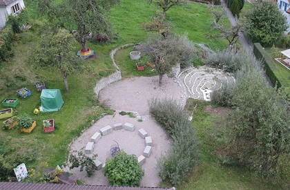 Der «Buntä Chilä Gartä» hinter der Kirche in Sirnach entstand vor drei Jahren auf Anregung von Beno Kehl. «Ich bin Imker und betreue – verbunden mit der franziskanischen Gassenarbeit – viele Bienenvölker. Im Juni beginnt in der Schweiz die Zeit der ‹grünen Wüste›. Die Honigbienen würden verhungern, wenn man nicht zufüttert. Den Wildbienen geht es noch schlechter.» Um für mehr Blütenvielfalt zu sorgen, stellte ihm die Kirchgemeinde Land zur Verfügung. Inzwischen ist aus einfachen Anfängen ein sorgsam gestalteter Garten geworden: Sechs Kreise sind wie Blütenblätter um ein Zentrum angelegt. Jeder Kreis hat ein religiöses Thema und ist einem Tag aus der Schöpfungsgeschichte zugeordnet.
