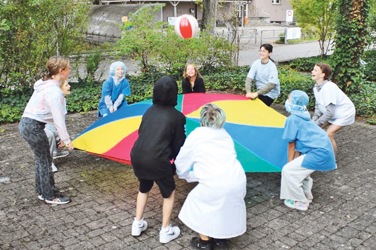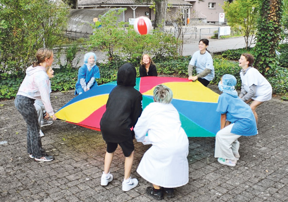 «Auch wenn es ein spezielles Thema ist, herrscht an den Kursen eine angenehme Stimmung und oft eine gewisse Leichtigkeit im Raum vor», ergänzt Nicole Acklin. «Die Kinder gingen unseres Wissens bis jetzt nie mit einem traurigen Gesicht oder niedergeschlagen nach Hause. Wir arbeiten mit spielerischen Elementen, bei uns darf auch gelacht werden.» Ein besonderes Highlight ist für die beiden Leiterinnen zum Beispiel das Spiel mit dem Fallschirmtuch. Die Kinder dürfen sich alle eine Berufskleidung aus dem Spital überziehen und erleben dann anhand des Ballspiels, dass es ganz viel Absprache und Netzwerk benötigt, wenn man Sterbende begleitet.