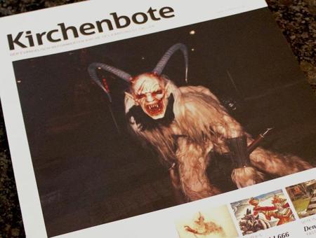 Die aktuelle Frontseite des St. Galler Kirchenboten sorgt für Schlagzeilen. Besorgte Eltern protestieren gegen die dort abgebildete Teufelsmaske, sagen «20minuten» und «Radio FM1». Sie fürchteten um ihre Kinder.