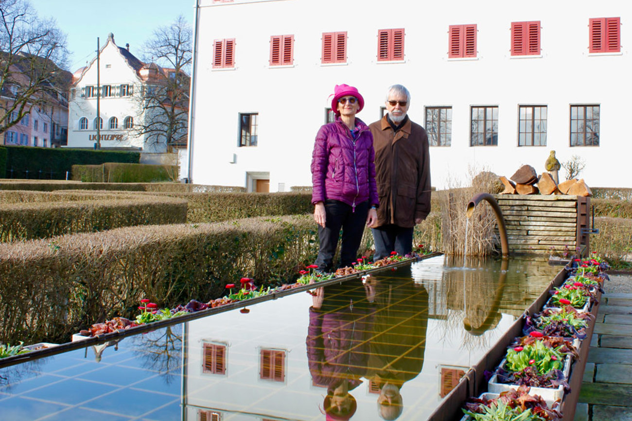 Kurz vor 9 Uhr im Garten des Klosters in der Oltner Altstadt. Es ist ruhig, Vögel zwitschern, das Wasser plätschert in den langen Brunnen, auf dessen Wasseroberfläche sich die Sonne spiegelt. Noch sind die akkurat geschnittenen Buchsreihen, die die Wege säumen, braun. In dieser Idylle findet das Interview mit Werner Good-Heiniger und Marlène Wälchli Schaffner statt. Die beiden leiten den Verein «Freundinnen und Freunde des Klosters Olten», seit letztem Jahr betreuen sie die Kirche und den Garten, wenn diese für die Bevölkerung geöffnet sind.