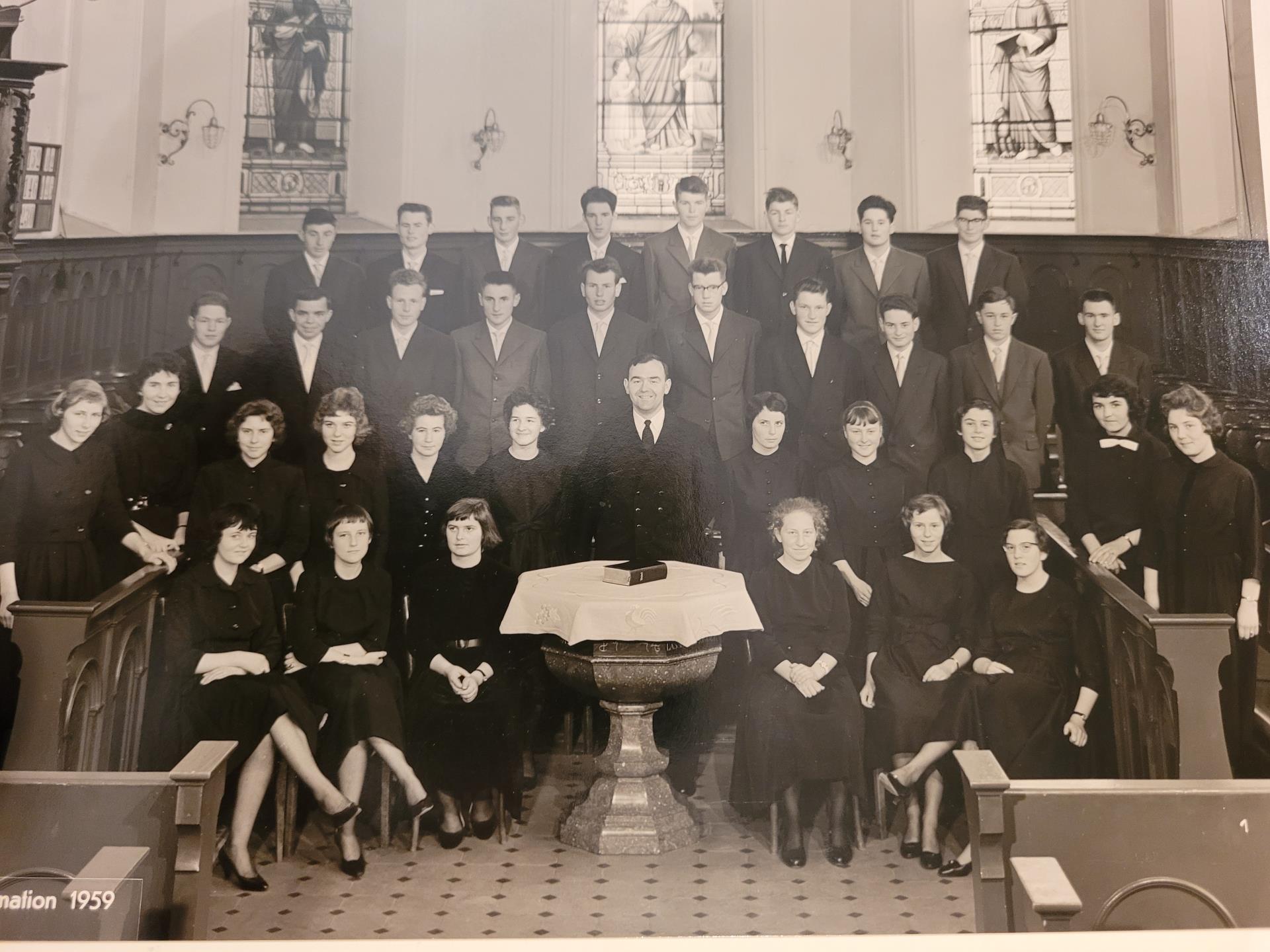 Dem kann sein Omi, Ruth Bäbler nur beipflichten. Das Vorbereitungsjahr war sehr zeitintensiv und aufwändig. Die angehenden Konfirmandinnen und Konfirmanden hatten jede Woche Religionsunterricht. Auch wenn die Konfirmationsklasse gross war, fiel dem Pfarrer ein Fernbleiben eines Einzelnen sofort auf. Als Hausaufgaben mussten viele Kirchenlieder auswendig gelernt werden. Daneben war es obligatorisch, jeden Sonntag den Gottesdienst zu besuchen. Wer eine halbe Stunde vor dem sonntäglichen Gottesdienst zusätzlich noch zur Liederprobe erschien, bekam 10 Rappen geschenkt. Ruth Bäbler hat das alles pflichtbewusst mitgemacht und auch regelmässig das Einsingen vor dem Gottesdienst besucht. Der Konfirmationsgottesdienst wurde vom Pfarrer definiert, die Konfirmanden und Konfirmandinnen hatten keinen Einfluss auf dessen Gestaltung. Die Jugendlichen wurden einzeln aufgerufen und mussten zum Altar schreiten. Der Pfarrer übergab ihnen den Konfirmationsspruch und schaute jedem intensiv in die Augen. Dieser Augenblick hat sich in Ruth Bäblers Gedächtnis eingeprägt. Es war, als würde der Pfarrer sie mit seinem Blick durchdringen und ermahnen, stets nach den Regeln des christlichen Glaubens zu leben. Am folgenden Karfreitag und Ostersonntag mussten alle, immer noch in der schwarzen Fest-Kleidung, den Gottesdienst besuchen und durften dabei das erste Mal das Abendmahl einnehmen. Erst am Ostermontag wurde es etwas lockerer, dann fand der lang ersehnte erste, offiziell bewilligte, Tanzabend für alle frisch Konfirmierten statt.