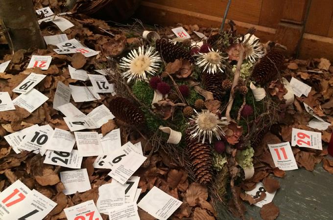 nen und Glarnern, die je ihre ganz eigene Sicht auf den Herbst haben. Von Spielen im Blätterwald ist zu lesen oder von Wandertouren, aber auch vom Alleinsein und von Dunkelheit ist die Rede. Beeindruckend ist die Verwobenheit von Natur, Mensch und Tier. Staunt man über Dachs und Eichhörnchen, die sich für die Winterruhe parat machen, so sieht man doch gleich, dass der Mensch es nicht anders macht, wenn er die Früchte des Herbstes einkocht. Auffallend ist ein Baum, der sowohl seine eigenen als auch Blätter eines Abreisskalenders verliert. Herbst bedeutet Werden und Vergehen, Wachsen und Sterben. Die Ausstellung macht deshalb auch auf die Feste im Kirchenjahr aufmerksam – Allerseelen und Ewigkeitssonntag. Das Totengedenken gehört in diese Jahreszeit genauso wie die Auseinandersetzung mit dem eigenen Leben. Die Natur stirbt auch im November. «Aber nicht nur!», betont Monica Marti. Alles ist in einen Kreislauf eingebunden. Dass der Baum die Blätter verliert, ist für ihn lebensnotwendig, um im Frühling zu neuem Leben zu erwachen.