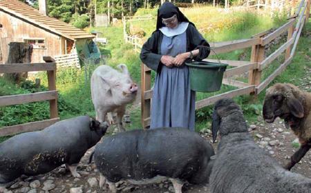 Schwester Theresia Raberger hat für ihren klösterlichen Weg den Orden der Franziskanerinnen gewählt. Sie will die Botschaft des Franz von Assisi nachleben. Der sprach bekanntlich mit den Tieren. Doch Theresias Weg führte zunächst über die Menschen. Während Jahren arbeitete sie in Innsbruck mit sogenannten «schwer erziehbaren» Jugendlichen in einem Heim. Später betreute sie nachts Drogenabhängige.