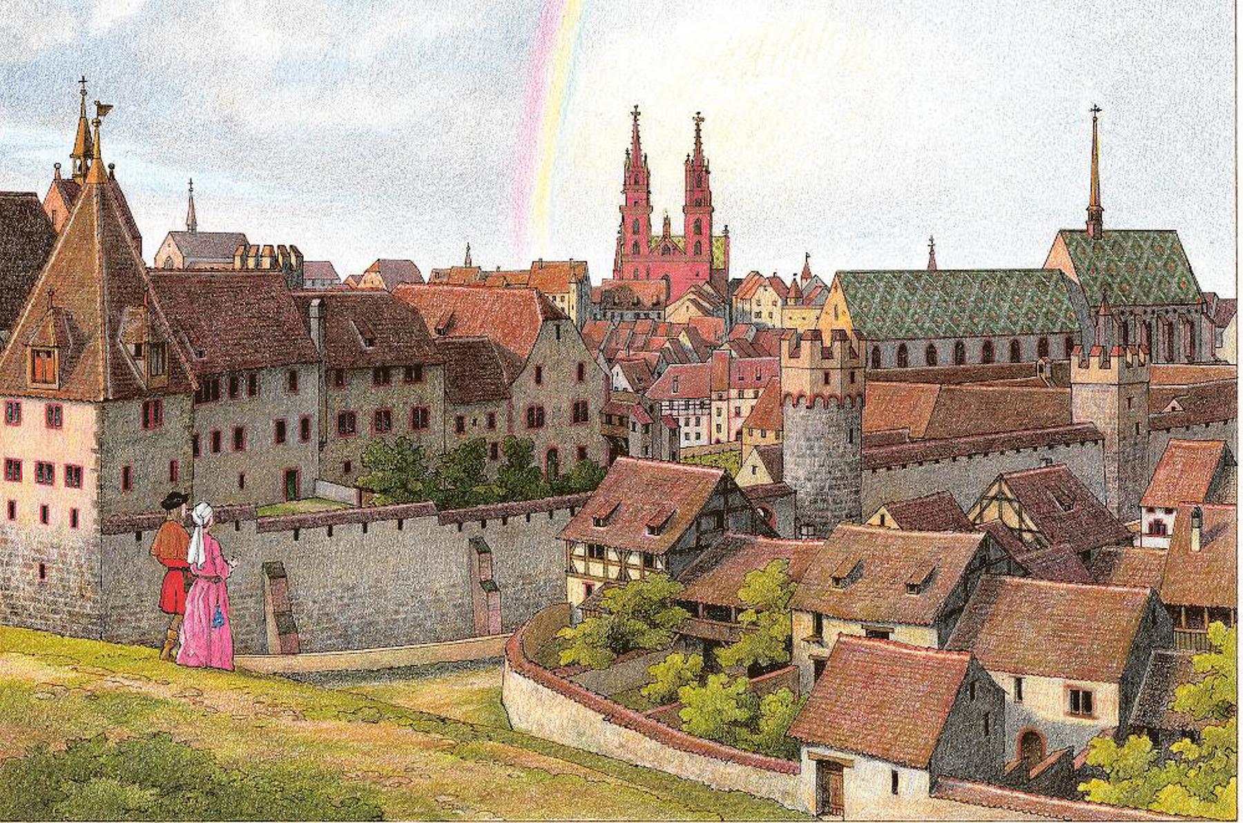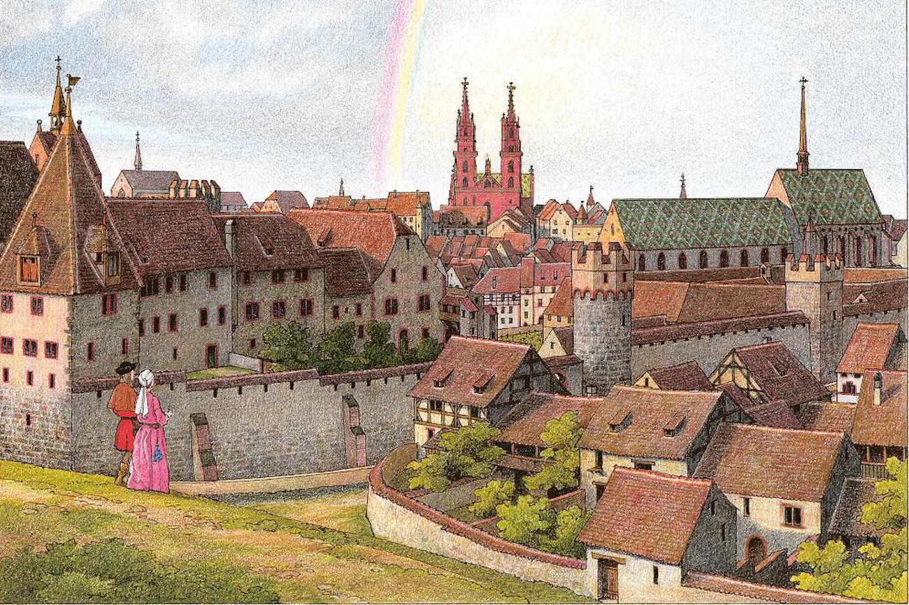 «Für dieses Buch rekonstruierte ich den mittelalterlichen Innenraum und die äussere Erscheinung des Basler Münsters, wie dieses vor der Reformation von 1529 in seiner mutmasslichen Farbigkeit ausgesehen haben könnte», erklärt Tramèr. «Bisher gab es keine solche Ansichten.» Alle Raum- und Domansichten fussen auf zahlreichen wissenschaftlichen Erkenntnissen, welche die kunsthistorische Forschung und die denkmalpflegerischen Bauuntersuchungen in den letzten Jahren zum Basler Münster lieferten. «Bebilderte Erzählbände mit einer hohen Dichte an Informationen und Emotionen werden ihre Anziehungskraft auch im digitalen Zeitalter nicht verlieren», ist Tramèr überzeugt. «In diesem Geist möchte ich auch weiterhin Bücher machen.»