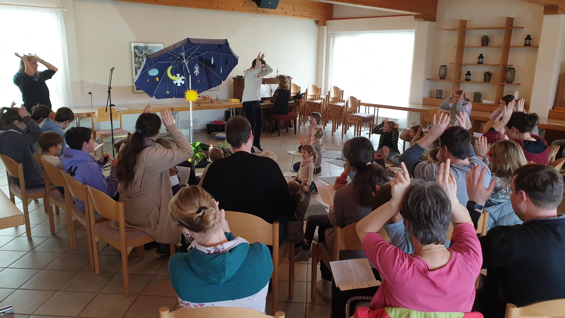Die Idee für die «Kirche wunderbar» entstand eigentlich aus der Not heraus. Ursprünglich fand sich die siebenköpfige ökumenische Arbeitsgruppe vergangenes Jahr zusammen, um eine gemeinsame Kinderbibelwoche zu organisieren. Doch zwischen Jungschar- beziehungsweise Jubla-Lagern, anderen Gemeindeaktivitäten und Ferienangeboten wie dem Ferienspass liess sich einfach kein geeignetes Datum für einen weiteren Anlass finden. So kam die Gruppe auf die Idee, das ganze Jahr über verteilt ein Angebot für Familien anzubieten. Die «Kirche wunderbar» war geboren – eine neue Form von Kirche, in der Kinder und Erwachsene den christlichen Glauben erleben und entdecken können (siehe Eindrücke im folgenden Video). «Im Grunde geht es darum, Familien mit Kindern bis circa zwölf Jahren den Glauben näher zu bringen. Dabei werden die Kinder von einer Bezugsperson, wie etwa den Eltern, Grosseltern oder Paten begleitet», erklärt Pfarrerin Regine Hug die Idee hinter dem Projekt.