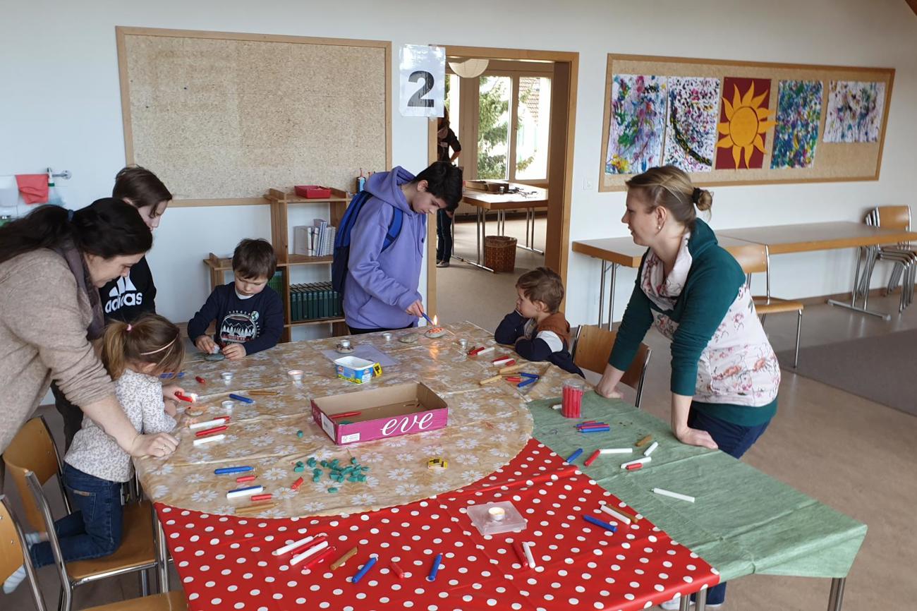 Nach vielen Sitzungen und Planung war es Ende Februar dann endlich so weit: Die erste «Kirche wunderbar» fand im und ums evangelische Kirchgemeindehaus statt. Noch in den Wirren um die aufgehobenen Corona- Verordnungen war unklar, wie viele Gäste kommen würden. Mit 60 Teilnehmenden zeigte sich das Kernteam und ihre Helferinnen und Helfer mehr als zufrieden. «Besonders gefreut hat uns, dass wir viele Erwachsenen und Kinder ansprechen konnten, welche wir sonst nicht so oft im Gottesdienst sehen », erzählt Pfarrerin Hug. Neben Willkommenssnacks, Zmittag und Getränken gab es eine Vielzahl an Aktivitäten und Spielen. Im Zentrum stand dabei das Thema «Gott ist wunderbar». Und so konnten an neun verschiedenen Posten die Schöpfungsgeschichte entdeckt und die Wunder des Allmächtigen und der Natur erfahren werden. So wurden beispielsweise Schneesternenscherenschnitte gebastelt, Naturmemory gespielt und Ton- Tiere getöpfert. Anschliessend gab es einen gemeinsamen Gottesdient, an dem alle teilhaben durften. «Wichtig ist uns dabei, dass die Kinder selbst mitgestalten können. Aber auch mit den Erwachsenen bietet sich so die Gelegenheit für ungezwungene Gespräche», sagt Hug. Zum Abschluss waren alle zum gemeinsamen Mittagessen eingeladen und bekamen auf einem Kärtchen mit einem Ausmalbild Ideen für Daheim mit auf den Weg.