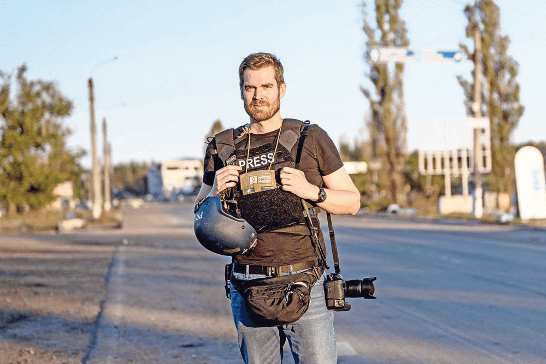 Zu Alex Kühnis Arbeitsausrüstung gehören neben zwei Fotokameras, drei Objektiven und einer Drohne auch eine kugelsichere Schutzweste, ein Helm und Verbandsmaterial. Seit zehn Jahren reist der freischaffende Berner Fotojournalist in Kriegs- und Krisengebiete – für ihn ein Privileg.