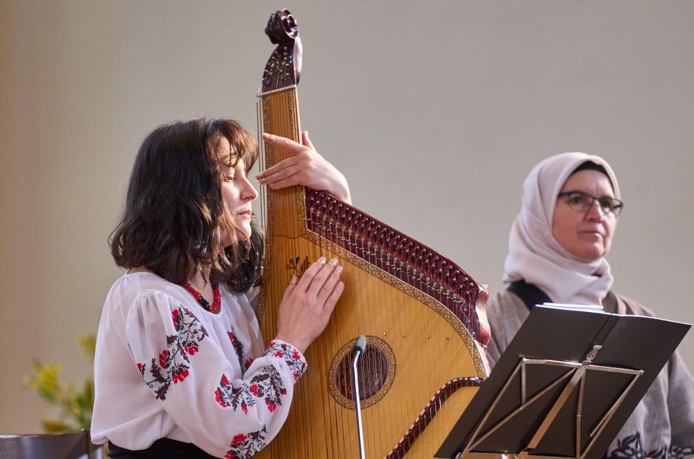 In der Lukaskirche war es totenstill, als Zoryana Mazko ein Lied aus ihrer Heimat anstimmte, das sie auf der Bandura, dem ukrainischen Nationalinstrument, begleitete. Gegen 200 Besucher und Besucherinnen waren am Samstagnachmittag in die Lukaskirche gekommen. Am interreligiösen Friedensgebet nahmen Christkatholiken, Orthodoxe, Reformierte, Katholiken sowie muslimische Geistliche und Gläubige teil. Eingeladen hatte die reformierte Landeskirche.