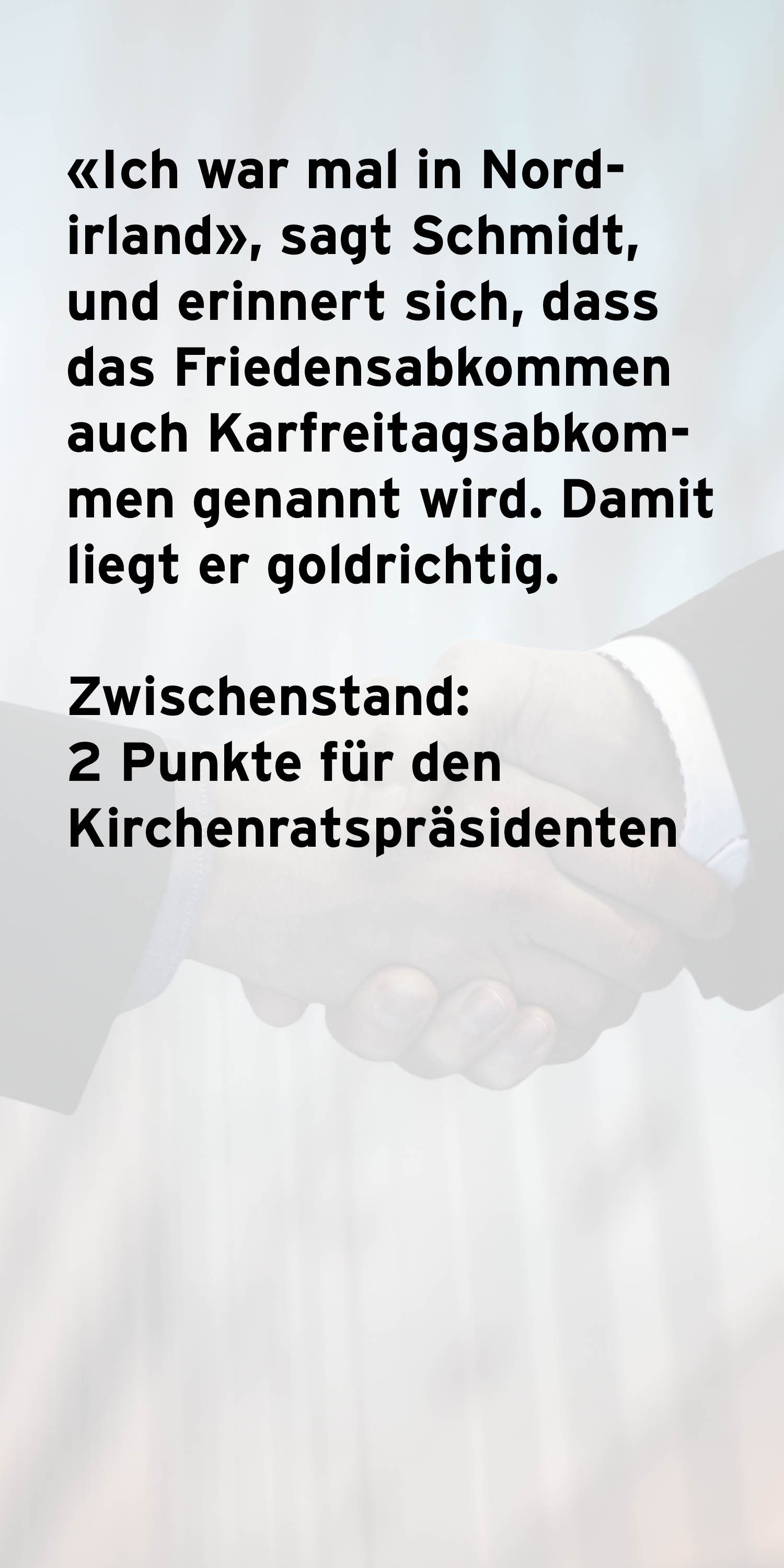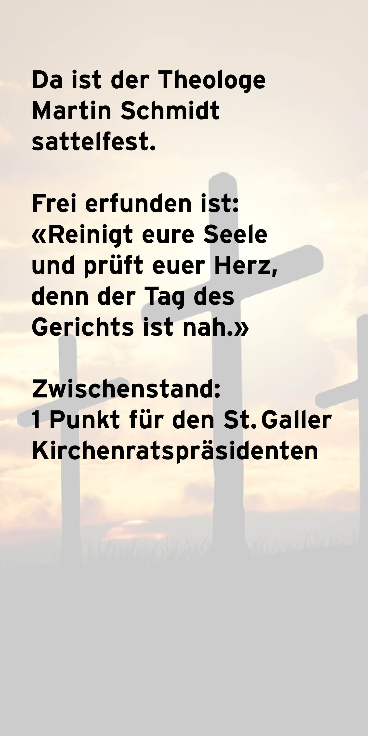 Haben Sie mehr Quizpunkte gesammelt als Kirchenratspräsident Martin Schmidt? War das Quiz zu leicht oder zu schwer? Teilen Sie es in den Kommentaren mit.