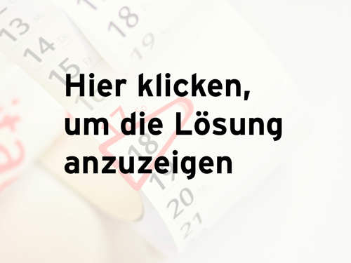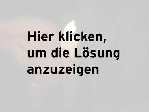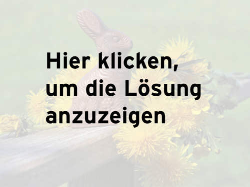Von den vier Antworten ist immer genau eine korrekt. Geben Sie zuerst Ihren Tipp ab und klicken Sie DANACH auf das Bild, um die Lösung anzuzeigen. Googeln und schummeln verboten. Viel Glück!
