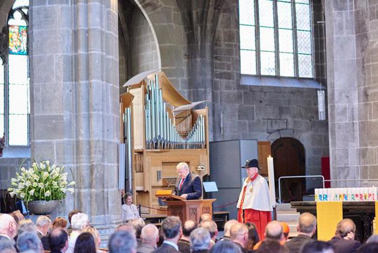 Wer vor der Kirche steht, dem fällt die Photovoltaikanlage auf dem Dach der Kirche kaum auf. Also gut gelöst. «Ehrlich gesagt hatte ich am Anfang schon gestalterische Bedenken, als uns die Geldgeber verpflichteten, auf der Kirche eine Photovoltaikanlage zu installieren», sagt Andreas Hindemann, Münsterbaumeister und Architekt des Bettinger Kirchenneubaus. «Aber zum Glück entwickeln sich PV-Anlagen nicht nur in technischer, sondern auch in ästhetischer Hinsicht in einem rasanten Tempo.»