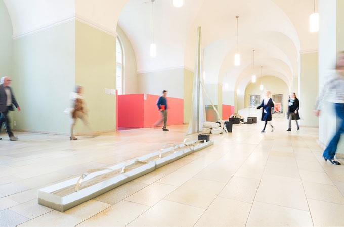 Was hat das nun aber mit den fünf Installationen zu tun, die im Foyer West unterhalb des Lichthofes stehen? Sie nehmen Replik auf ein Ereignis im Jahr 1572 – am 7. Mai entlud sich nach Jahren extremer Wetterlagen und Ernteausfällen der Himmel über Zürich und ein Blitz schlug ins Grossmünster ein. Was heute als Naturphänomen verstanden wird, war in Zeiten konfessioneller Richtungskämpfe als Zeichen Gottes interpretiert worden. War der Blitzschlag ein göttlicher Fingerzeig gegen die Zürcher Kirchenoberen? In zahlreichen Briefen versuchte Bullinger zu relativieren und die Deutungshoheit über den «göttlichen Blitzschlag» zu wahren.