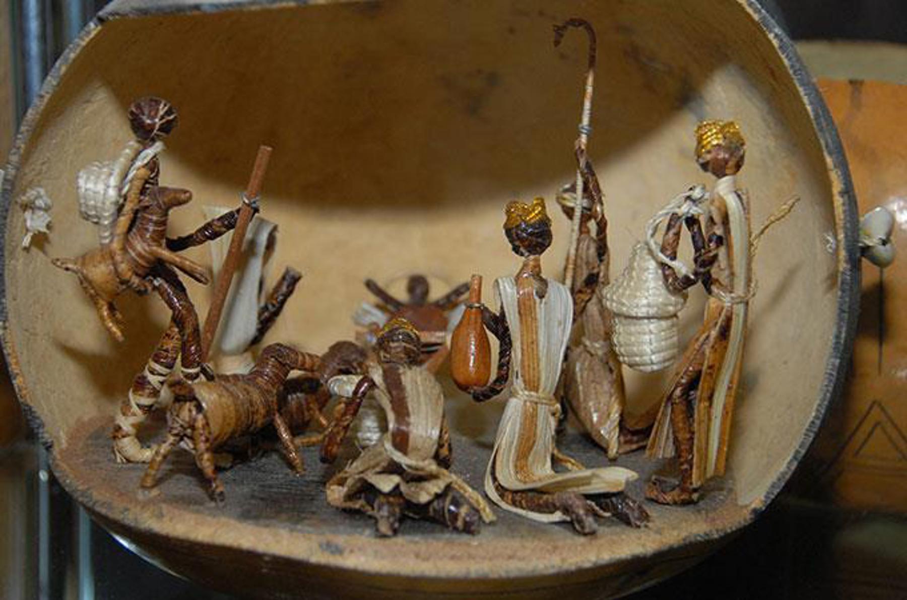 Nach wie vor am meisten Freude hat Rosmarie Risch an ihrer ersten Krippe. «Ich hänge an ihr!» Die Kalebasse zeigt in ihrem Innern nur die heilige Familie. Maria und Joseph tragen ein «Schlüttli» aus Maisblättern. Das Kindlein ist ebenfalls in Mais gewickelt. «Diese Krippe ist bei mir zu Hause und nicht ausgestellt.» Doch in der Erlebniswelt Toggenburg sind bis März immer noch 888 Krippen aus 88 Ländern zu sehen, ist Rosmarie Rischs Reich zu bewundern. www.erlebniswelttoggenburg.ch