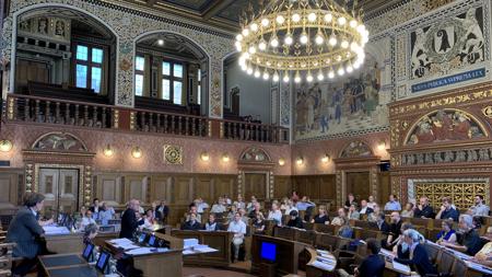 An ihrer letzten ordentlichen Sitzung der laufenden Legislaturperiode segneten die Synodalen der Evangelisch-reformierten Kirche Basel-Stadt (ERK BS) im Grossratssaal unter anderem das Strategiepapier zur Kirchenentwicklung ab. Unter Leitung einer Delegation aus Kirchenrat und Synode hatten interne Arbeitsgruppen in einem längeren Prozess die zentralen Aussagen zu den Themenfeldern Mission, Vision, Strategie und Leitbild formuliert. Der gemäss Kirchenratspräsident Lukas Kundert konsistente Text ist das Resultat von fast fünfzig Sitzungen. Nach längerer, teilweise hart geführter Diskussion nahm das Kirchenparlament nur gerade eine einzige Textkorrektur vor. Das Strategiepapier ist im Wortlaut auf der Homepage der ERK BS für die Öffentlichkeit einsehbar.