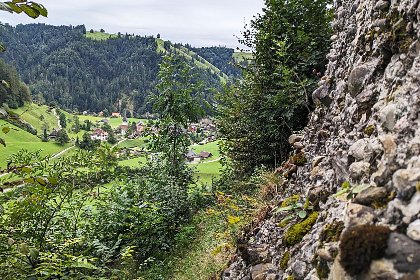 Und wer gerne mehr Bewegung hat, findet ohne weiteres Möglichkeiten direkt ab Trub, etwa den schmalen Weg durch steiles Gelände und wilden Wald zum Balmeggberg hinauf. Dort ist übrigens auch ein landwirtschaftliches Kontrastprogramm zu sehen zur aufgeräumten Viehwirtschaft, die unten vorherrscht: Auf dem Hof wird Permakultur betrieben, es gibt einige Jurten zum Übernachten und ein öffentliches Kursangebot.