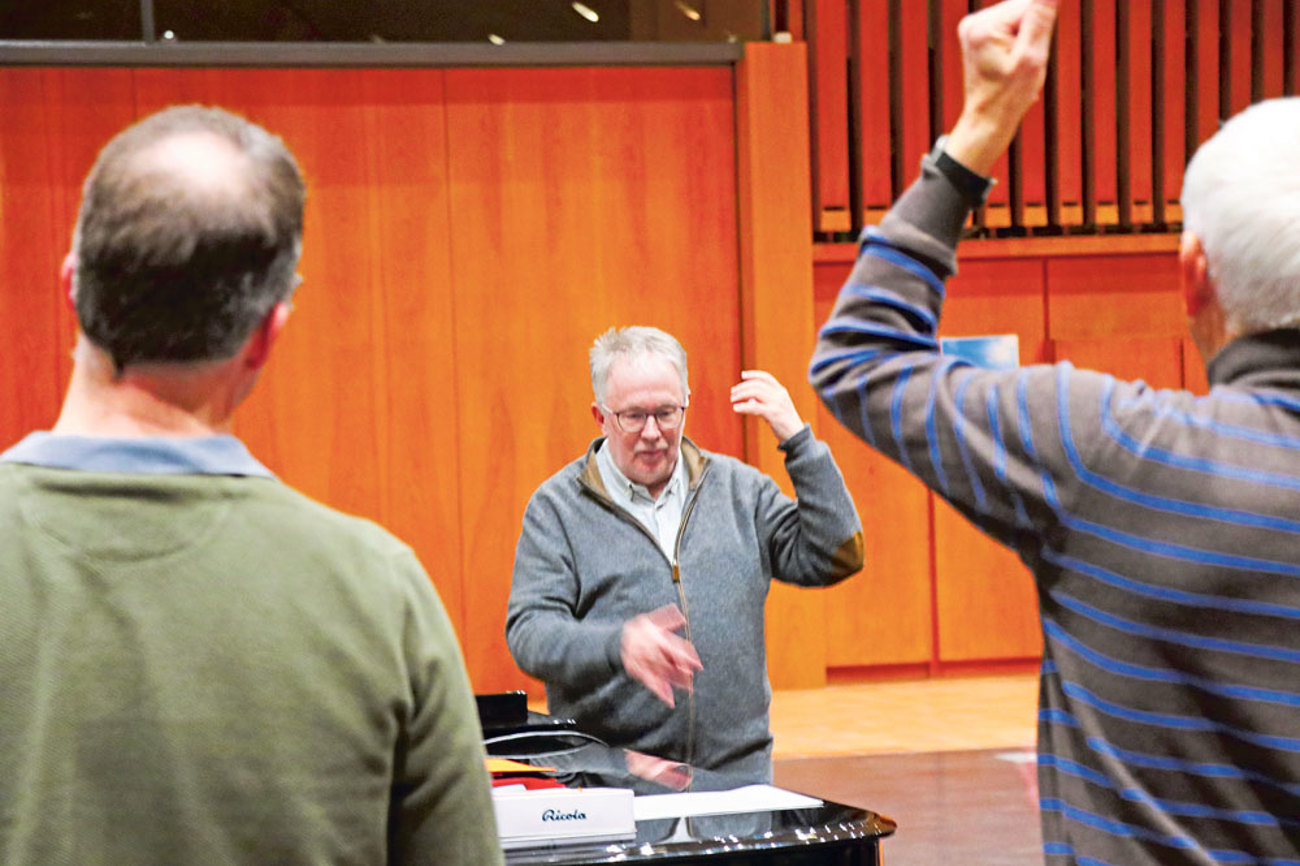 Der Dirigent bezeichnet eine Chorprobe als gemeinsames Ritual. «Ich kann nicht gegen den Atembogen der Sängerinnen und Sänger arbeiten, denn natürlich haben wir bei älteren Leuten Einschränkungen im Stimmumfang und in der Aufmerksamkeitsspanne. Ich muss mir dessen bewusst sein, wen ich vor mir habe, und die Anforderungen richtig dosieren. Ich bin mit meiner Arbeit den Leuten sehr nah am Atem.»