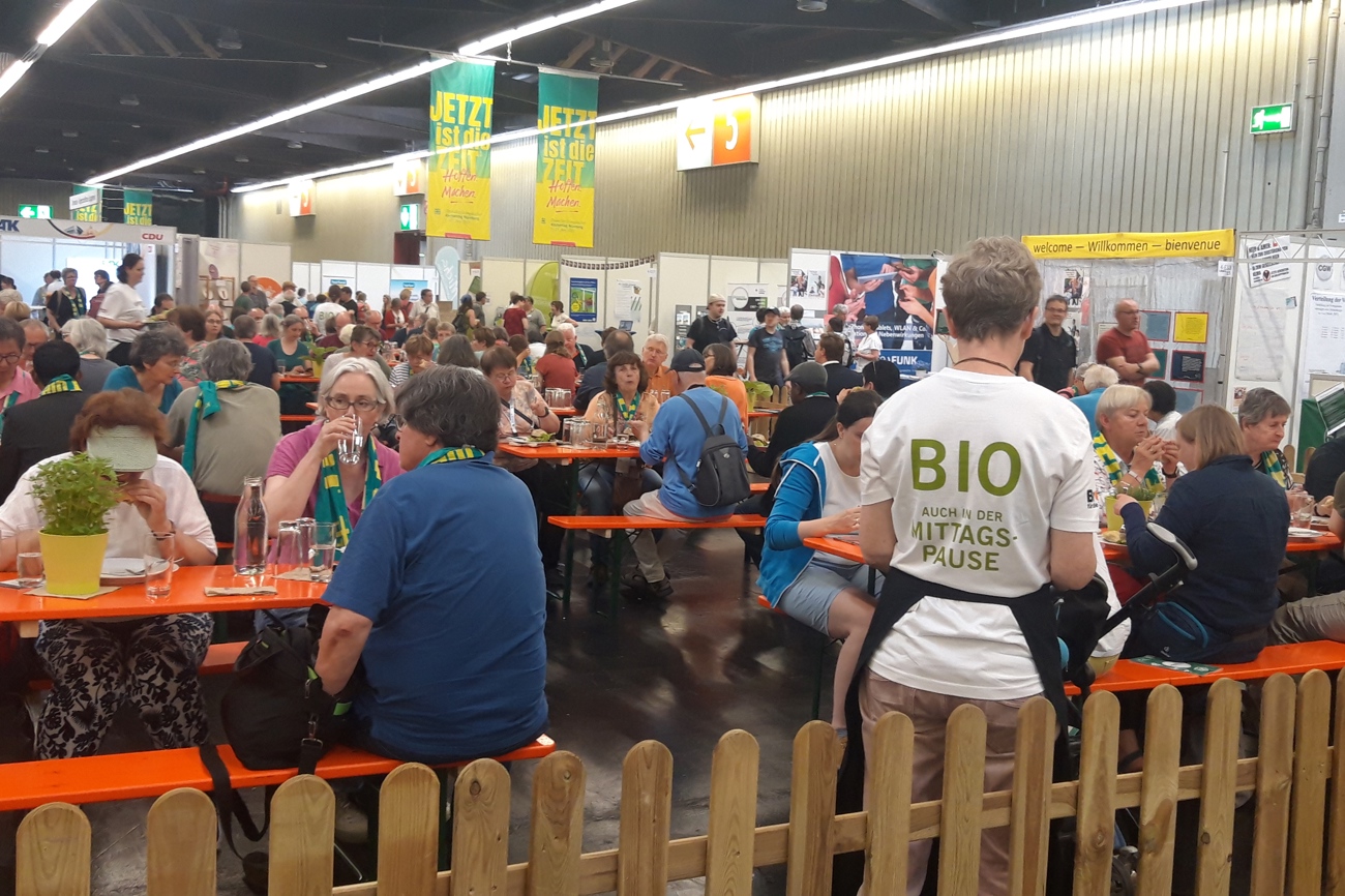 Der Wecker klingelt um 7 Uhr … mitten in der Nacht. Aber es ist Kirchentag, schlafen kann ich dann wieder zuhause! Beim Frühstück geht es schon gleich los – Silvia fällt mir um den Hals, mit ihr habe ich in Tübingen studiert, dort winkt Hans Werner, Vorsitzender der Konferenz der Landesausschüsse, hier ist Kira, Theologiestudentin mit Mann und Kind, und zu Tisch lerne ich Heike Springhart kennen, seit letztem April Landesbischöfin in Baden. Spannender Austausch zu «wie ist bei Euch/bei uns?»!