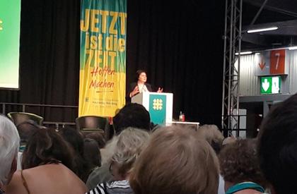 Und zum Schluss der Empfang bei den Grünen. Alle Parteien laden ein zu Reden und Häppchen beim Kirchentag, aber bei den Grünen ist’s legendär. Prosecco schon beim Eingang, soviele Leute, dass man sich kaum umdrehen kann – aber hier trifft man dann auch diejenigen, die man schon ewig nicht mehr gesehen hat.