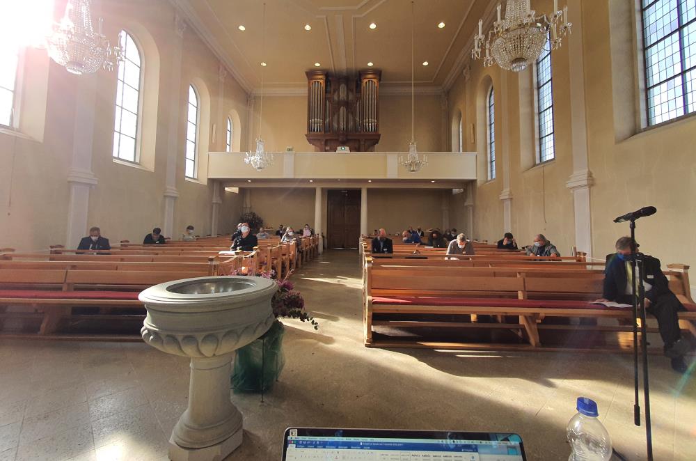 Ob der langen Traktandenliste konnte man tatsächlich fast verzagen, mussten auch die Traktanden der wegen Corona abgesagten Frühlingssynode abgehandelt werden. Der Präsident der Synode, Roland Meyer, führte ruhig und ohne jemals die Redner zu drängen durch die über vierstündige Sitzung. Wegweisend war der Entscheid der Synode, anlässlich des 25-Jahr-Jubiläums der Kantonalkirche 2023 einen Kirchentag zu veranstalten. Letztmals geschah dies 2015. Das dafür benötigte Budget wurde gesprochen und Kirchenrat Bruno Jakob wurde als Projektleiter gewählt.