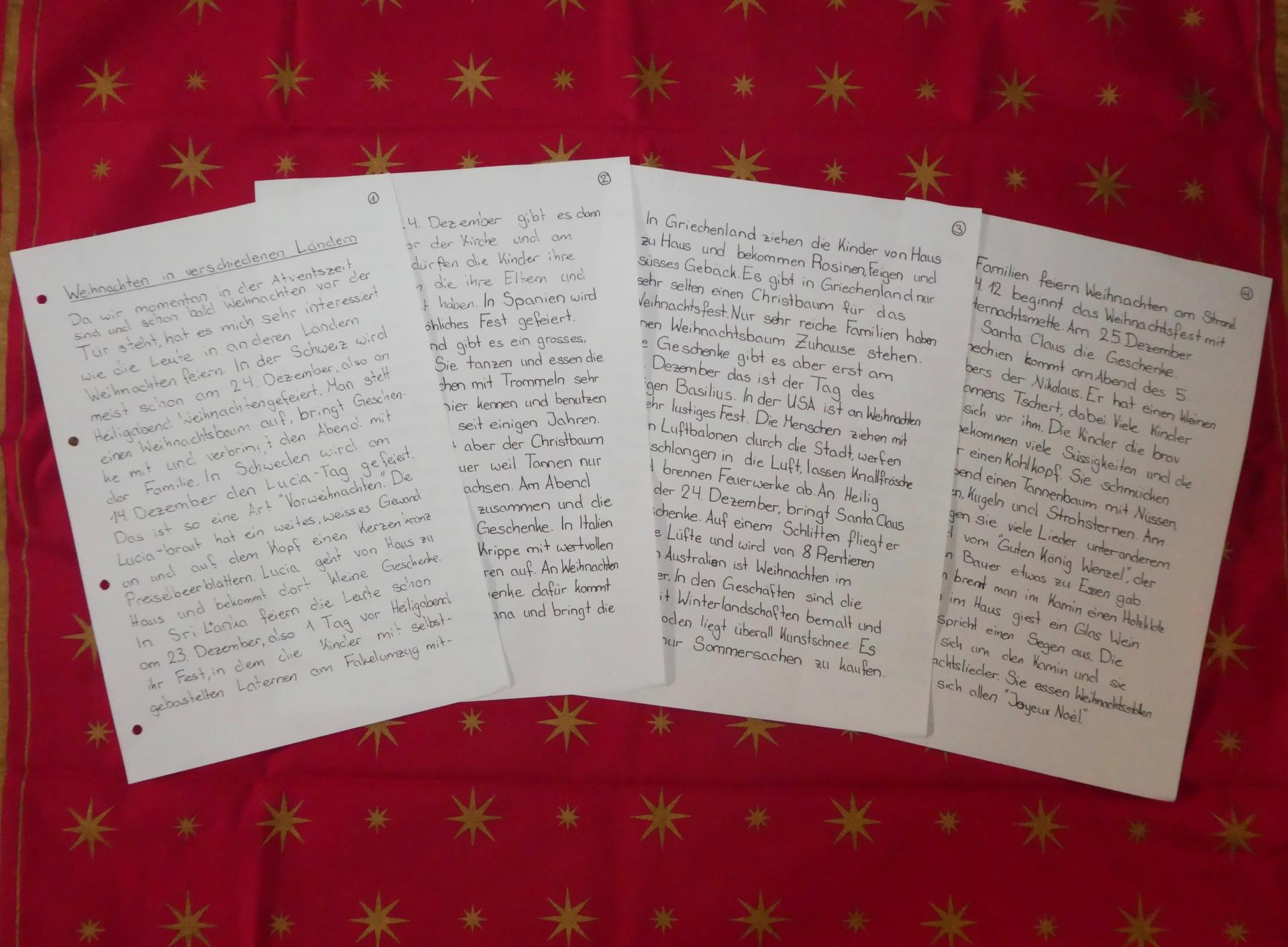 Ein Adventskalender mit Weihnachtsbräuchen aus aller Welt brachte sie auf das Thema «Weihnachten in anderen Ländern» für die schriftliche Arbeit, und auch Google und Wikipedia halfen bei der Suche weiter.